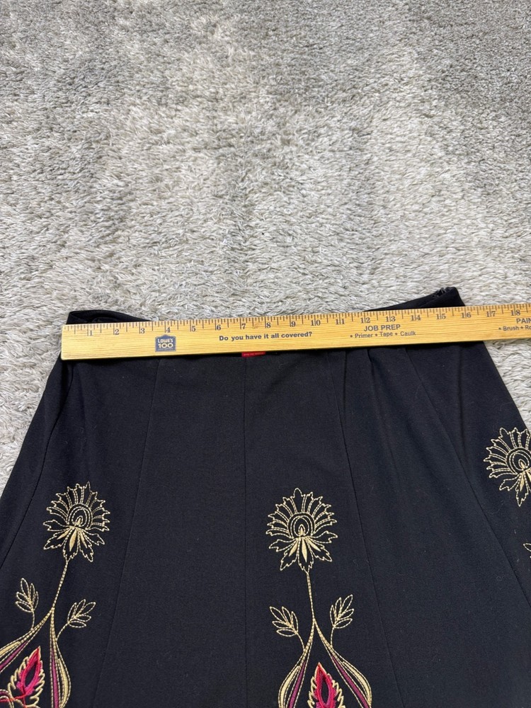 Sunny Leigh Skirt Women 12 Belle Russe Black Floral Embroidered Flared A-Line