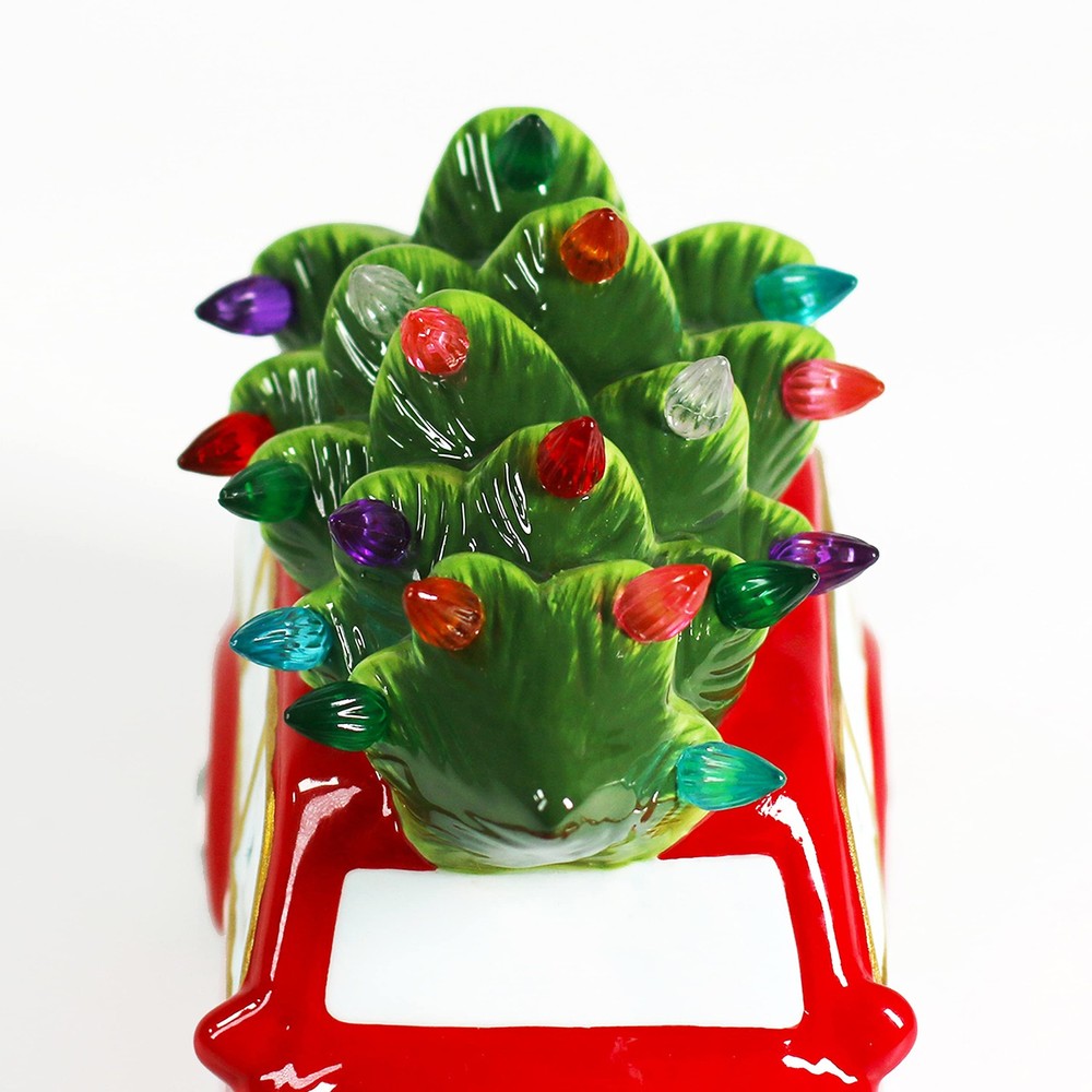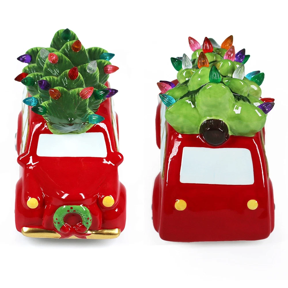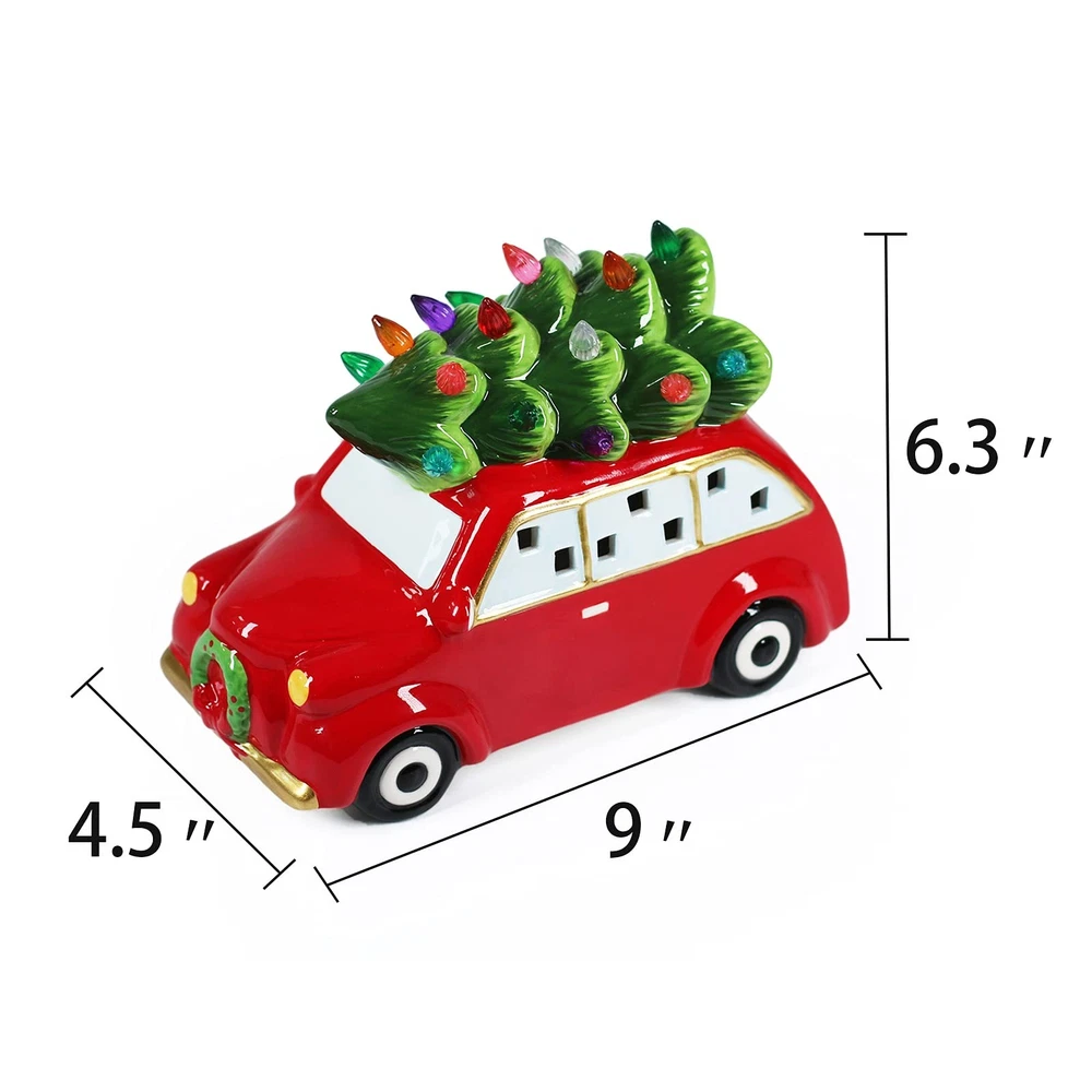 Sunnyglade Ceramic Christmas Tree with Vintage Car Tabletop Decor