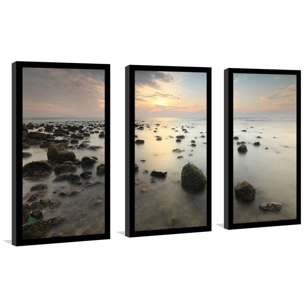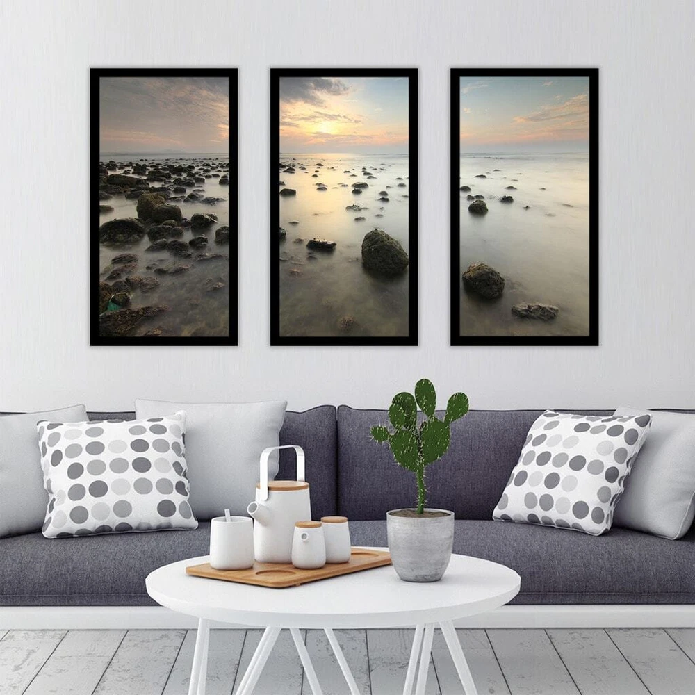 This Wall Art Set of 3 is printed on Plexiglass using a high-speed flatbed printer.Producing excellent print quality with a 6-color plus white UV-curable inkjet system.The breathtaking effect of fine art printed directly onto Acrylic is unique and exquisite.Its reflective vibrant colors creates a contemporary style of art that will bring depth to your walls.The artwork has been reprinted from the Artists' original piece with written permission.Made in North America & Arrives ready-to-hang.Frame: 1" BlackThis framed art print is being custom built for you. Please allow 10 business days for the product to leave our warehouse. Shape: RectangleOrientation: HorizontalSubject: Photography, Sea & ShoreStyle: Fine Art Giclee, Contemporary Free Shipping Over $49.99* Details "Sunrise in the sea" Framed Plexiglass Wall Art Set of 3 Product Description: This Wall Art Set of 3 is printed on Plexiglass using a high-speed flatbed printer.Producing excellent print quality with a 6-color plus white UV-curable inkjet system.The breathtaking effect of fine art printed directly onto Acrylic is unique and exquisite.Its reflective vibrant colors creates a contemporary style of art that will bring depth to your walls.The artwork has been reprinted from the Artists' original piece with written permission.Made in North America & Arrives ready-to-hang.Frame1" BlackThis framed art print is being custom built for you. Please allow 10 business days for the product to leave our warehouse. ShapeRectangle OrientationHorizontal SubjectPhotography, Sea & Shore StyleFine Art Giclee, Contemporary