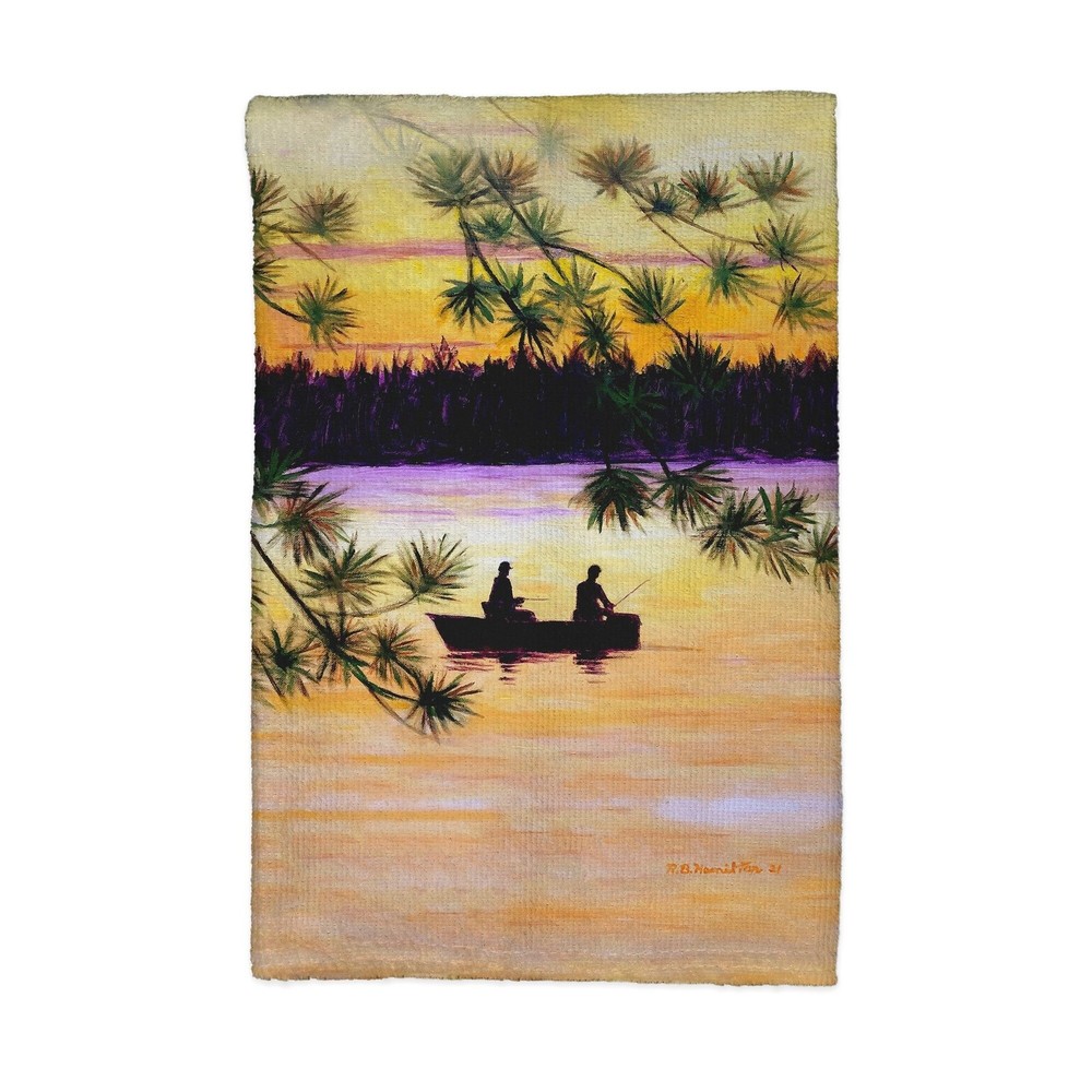 New microfiber and cotton 16" x 25" absorbent kitchen towels. Can be used indoors or outdoors. All of our products are based on designs by artists R.B. Hamilton and Betsy Drake and are printed in the USA from imported materials. Free Shipping Over $49.99* Details Sunset Fishing Kitchen Towel - 16x25 Product Description: New microfiber and cotton 16" x 25" absorbent kitchen towels. Can be used indoors or outdoors. All of our products are based on designs by artists R.B. Hamilton and Betsy Drake and are printed in the USA from imported materials.