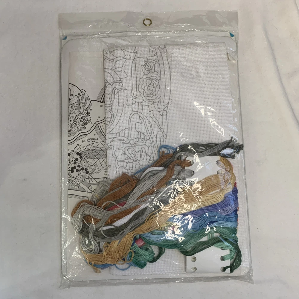Sunset No Count Cross Stitch The Hat Shop # 13918 is a vintage cross stitch kit from 1989 with a "Hats" theme. The kit includes dimensions for a frame measuring 18"x8". It is a United States-made unit that uses a no count cross-stitch format, suitable for hand embroidery enthusiasts. The package was opened, but is intact. J1-17