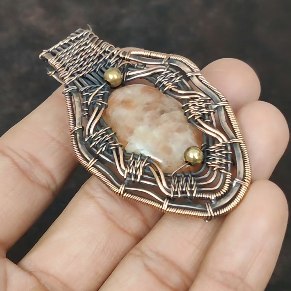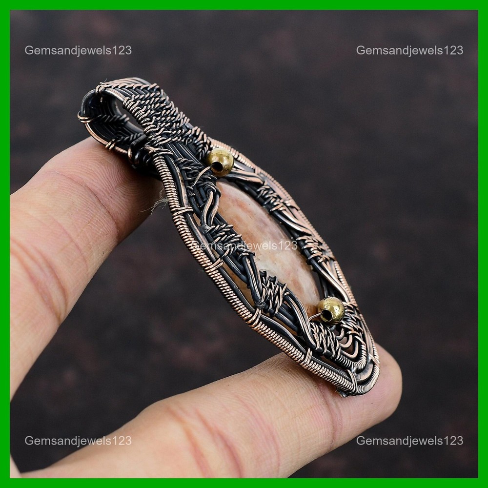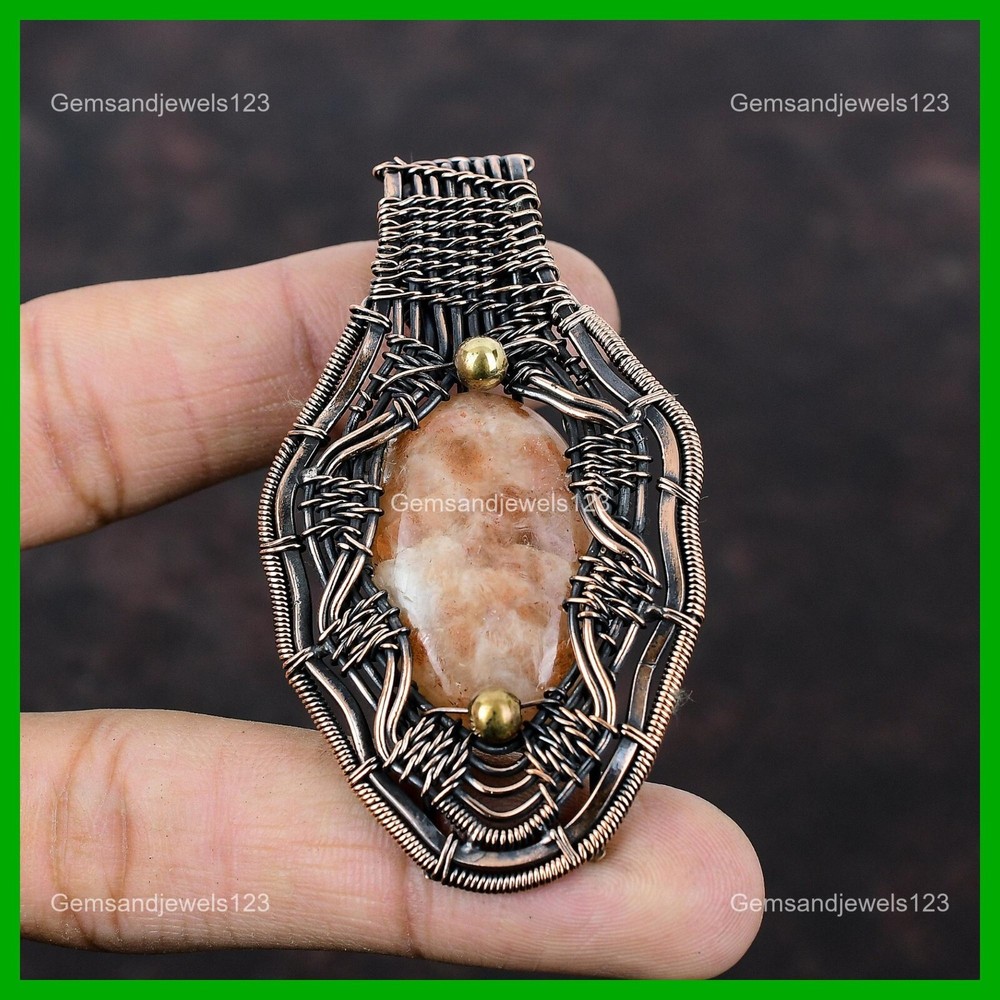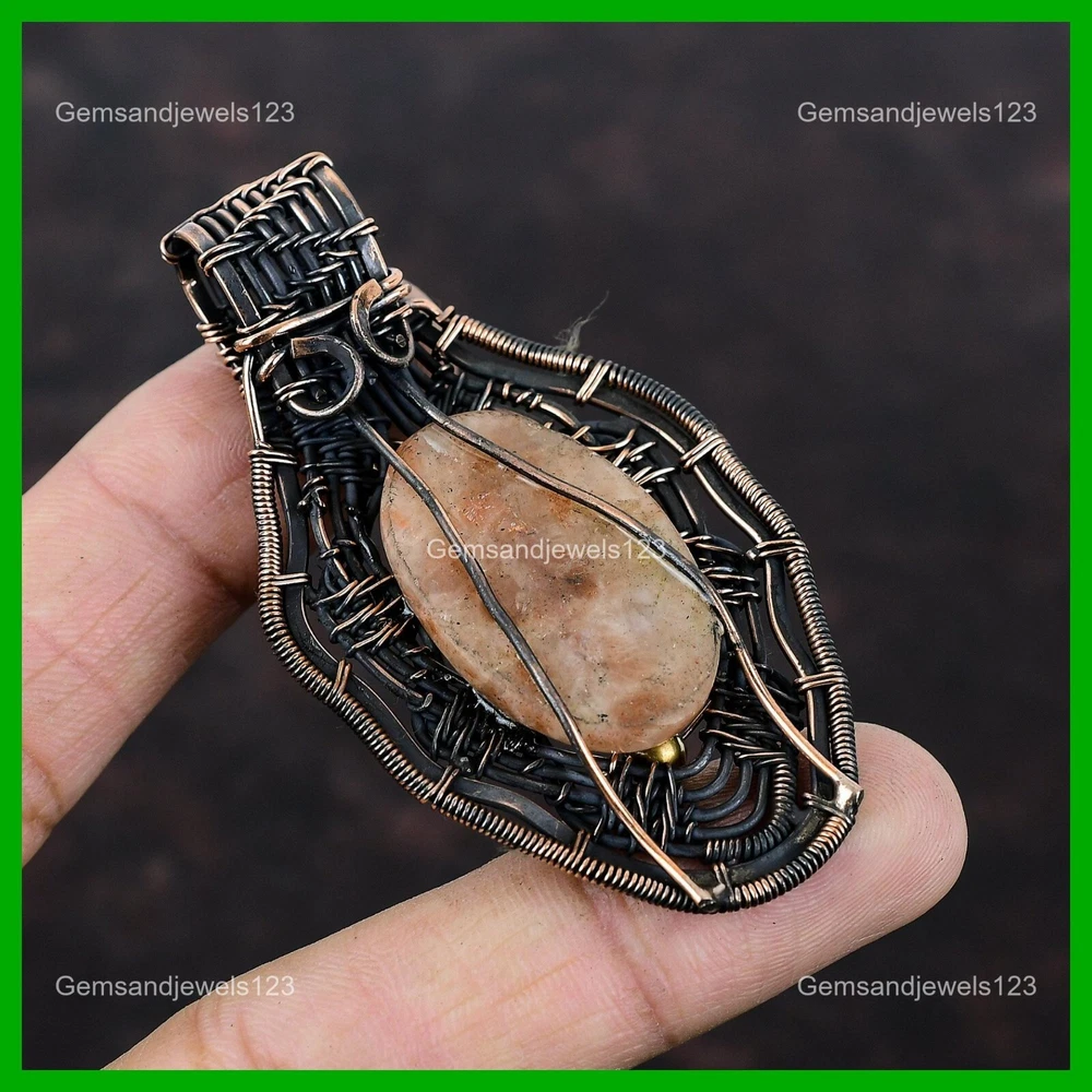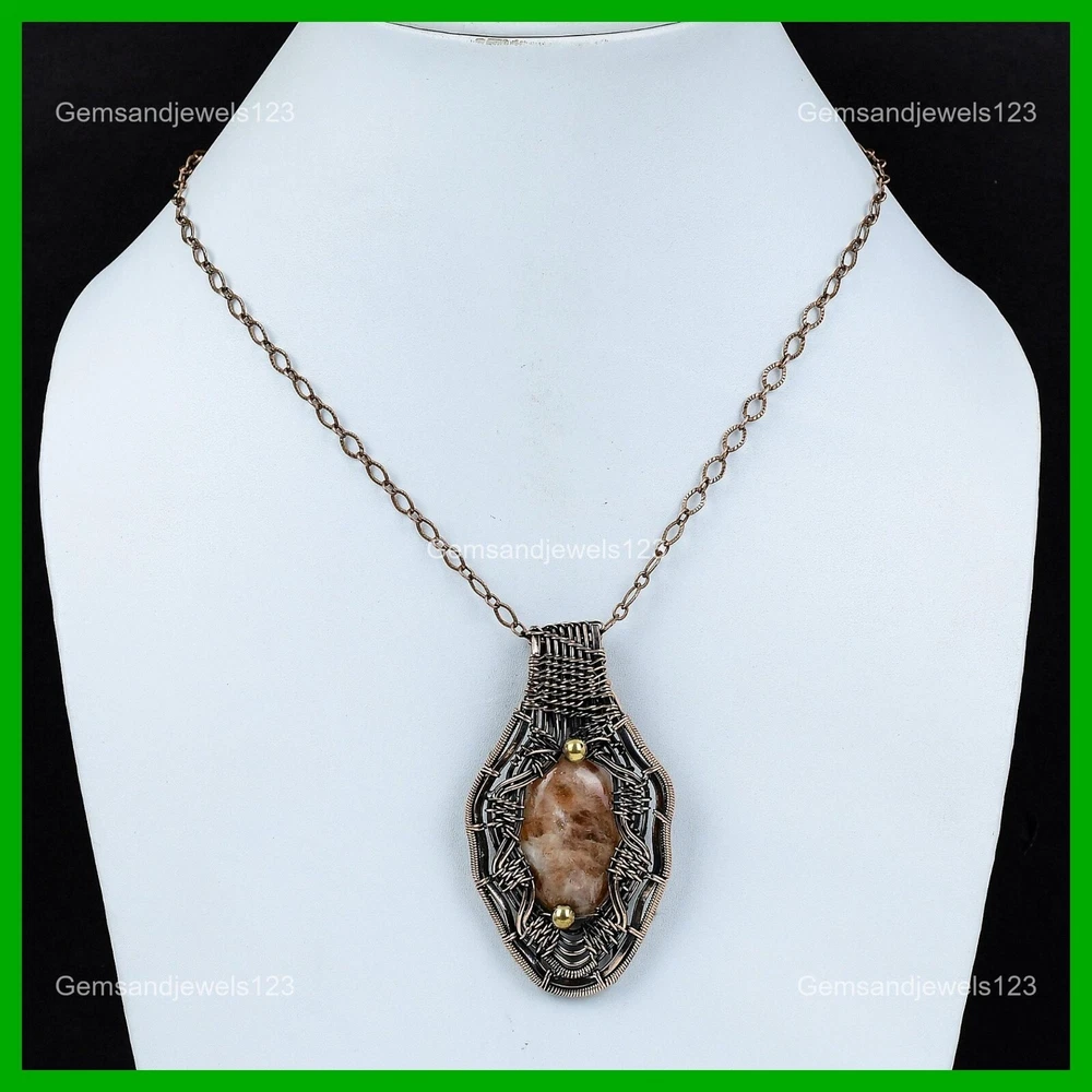 Note : Due to the natural formation of this gemstone. Slight Variation in design and color are to be expected. Welcome to gemsandjewels123 Mothers day Deal Sunstone Gemstone Copper Boho Wire Wrapped Wife Pendant Jewelry Handmade Pendant, Wire Wrapped Pendant, Wire Wrapped Jewelry, Copper Pendant, Copper Wire Pendant, Wrapped Jewelry, Wire Wrap Pendant, Wire Wrap Jewelry SKU : VFWP-2287 Gemstone : Sunstone Stone Shape : Oval Metal Purity : Unknown Copper Length : 72 Millimeters Width : 41 Millimeters Copper has been used for jewelry making for thousands of years, dating back to ancient civilizations such as the Egyptians, Romans, and Aztecs. Copper was valued for its beauty, versatility, and durability, and was often used to make everything from jewelry and coins to cookware and tools. In addition to its historical significance, copper jewelry also offers several benefits. Copper is a natural conductor of heat and electricity, which makes it ideal for energy healing and therapeutic purposes. Wearing copper jewelry is believed to have various health benefits, such as improving circulation, reducing inflammation, and boosting the immune system. Some people also believe that copper jewelry has the ability to balance energy and improve mood. For Mother's Day Gift For Father's Day Gift For Promise For Valentine's Day For Halloween Party For Christmas Day Gift For New Year Party For Mom For Her If you can't find the information you need or need some advice for your design? Feel free to contact us. We are fast to reply :) All our work is made by hand with Love and Care in our workshop Thank you so much for visiting and hope you enjoy shopping with us gemsandjewels123 is committed to delivering the best quality sterling silver jewelry to customers. As a handmade jewelry manufacturer, we offer an extensive selection of copper gemstone jewelry that showcases the brilliance of our craftsmanship. We are an experienced handmade jewelry supplier with expertise in embellishing gemstones to suit every style. We offer you the liberty to create your jewelry ensemble with sparkling, earthy, and pure gemstones. Our Talented artisans masterfully handcraft each piece of jewelry you see here. Our pieces are made with genuine gemstones. The one-of-a-kind piece you see here is the same exact piece you will receive.