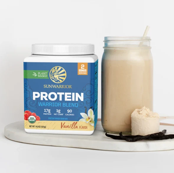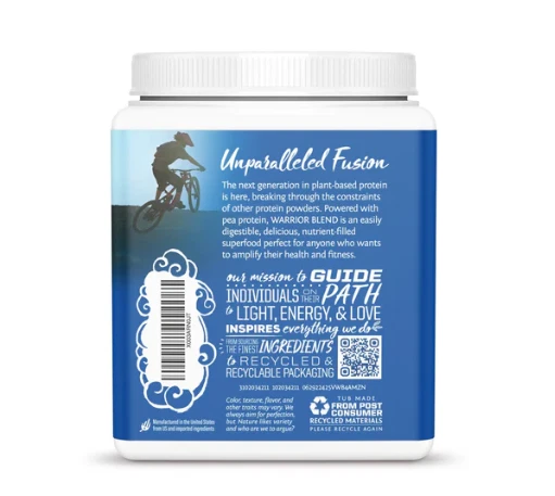 Warrior Blend Organic High Performance • KETO Friendly Sunwarrior's Warrior Blend Protein Powder is a top-quality plant-based protein supplement designed to fuel the body with clean and sustainable protein. The great-tasting formula boasts a powerful blend of organic pea protein, hemp protein, and goji berry powder, providing a well-rounded supplement to support muscle recovery and growth. Medium-chain triglycerides from coconut work synergistically with the other ingredients to create a unique vegan protein exceptionally rich in amino acids and BCAAs. Warrior Blend incorporates only organic, non-GMO ingredients, ensuring consumers receive a pure and potent product free from harmful additives. This vegan protein powder is easily digestible and free from common allergens such as gluten, soy, and dairy, making it an excellent option for those with dietary restrictions or sensitivities. Whether added to smoothies, shakes, or simply mixed with water, Warrior Blend offers a convenient and delicious way to support overall health and wellness.