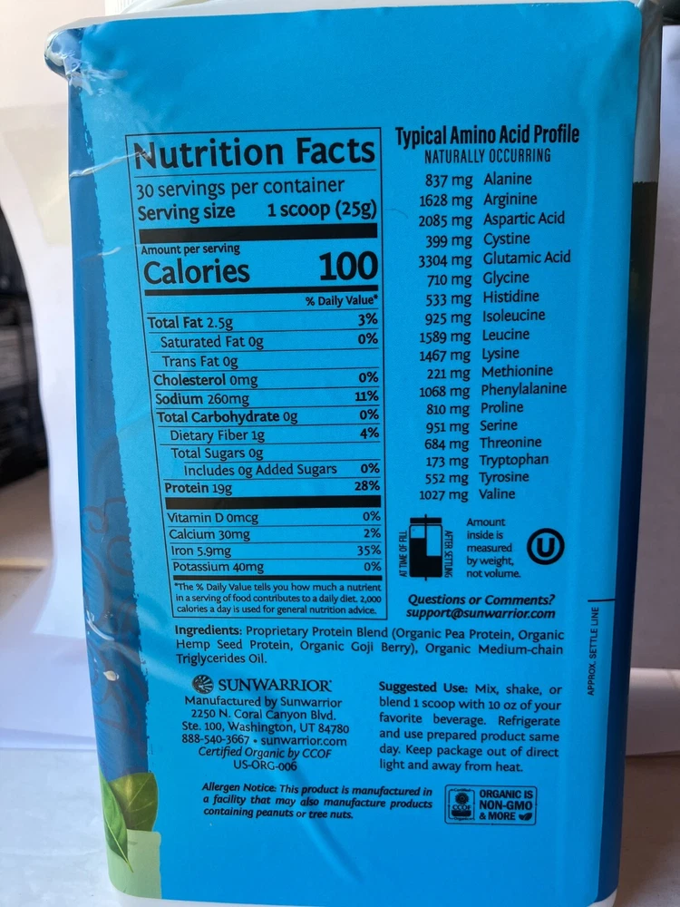Sunwarrior Warrior Blend Organic Protein Vanilla Dietary Supplement 1.65lbs Description Sunwarrior Warrior Blend Organic Protein Vanilla Dietary Supplement 1.65lbs. Product Detail Brand : Sunwarrior Formulation : Powder Volume : 1.65lbs Type : Protein Please message me if you have any questions.