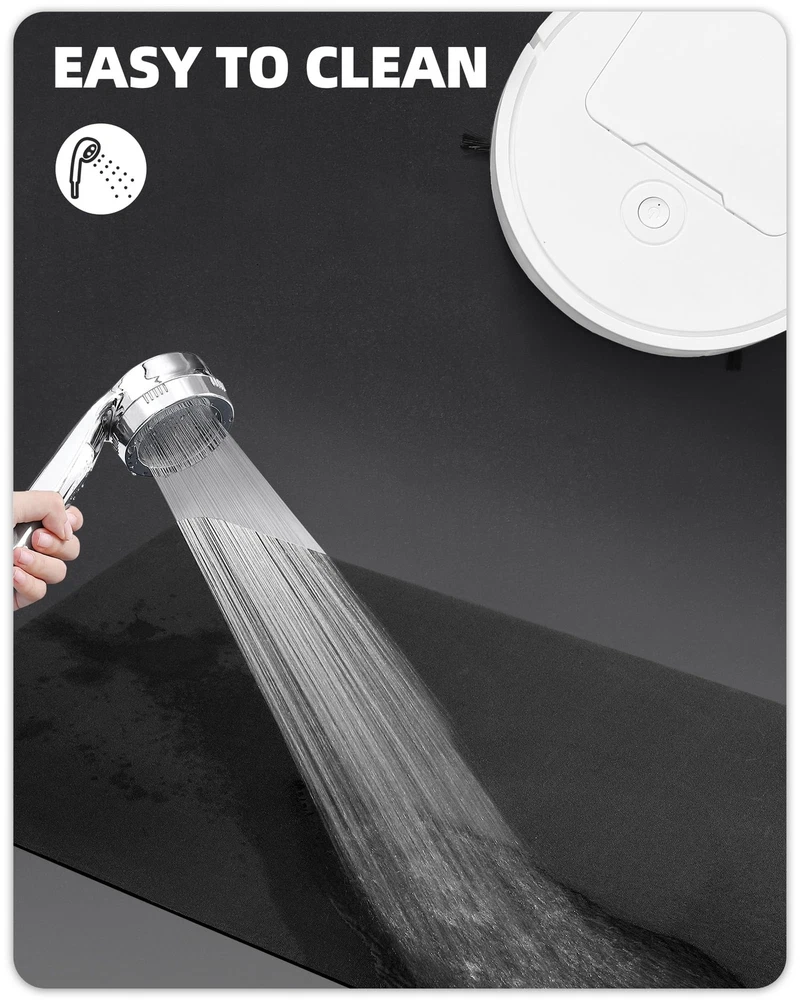 quick dry bathroom rugs sets EXCELLENT ABSORBENCY: Compared to those traditional bathroom mat, this upgraded bathmat adopts a new composite material which can soak up water in a most efficient way, keeping your bathroom floor always dry and clean SLIP-RESISTANT AND SAFE: The anti slip rubber backing provides superior grip and keeps the shower mat securely in place, ensuring safety and preventing slips and falls after stepping out from bathtub or shower QUICK DRY AND LOW PILE: The thin and non-plush construction allows the mat to dry quickly on its own within a few minutes; thin enough to fit under the door, easily allowing the door to swing open without getting caught DIRT-RESISTANCE AND EASY TO CLEAN: Unlike other bathroom floor mats with plush fiber, this new type bath rug has no microfiber, it won't catch hair, fur or dirt, causing no trouble to clean; you can easily maintain it by rinsing and hanging up to air dry SIMPLE PRACTICAL AND VERSATILE : If you don't want loud designs or patterns overtaking, then this is a good shower carpet choice for you; having several sizes to choose from, you can easily find one to fit in front of the single or double sinks, showers, bathtubs, vanities and more