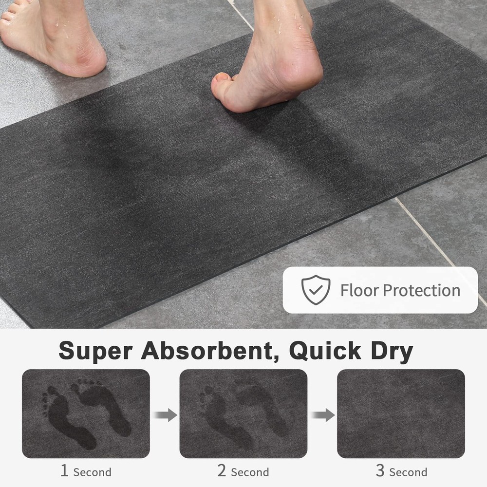 Stiio Bath Mat Rug, Super Absorbent Quick Dry Non-Slip Thin Bathroom Rugs, Easy Clean Washable Bathroom Floor Mat That Fit Under Door, Thin Shower Mat for Bathtub, Sink, Bedroom 15x23 inch, Dark Grey 【Non-slip Bath mats】Our bathroom mats are engineered with non slip rubber backing that offer better grips on both dry and wet floors, and do not shifts, slips, or curls. Place these bath rugs in the bath, kitchen, living room, front of the sink to create a reliable net for elders and children. Hurry to say goodbye to traditional slippery TPE/TPR backed bath rugs for bathroom. 【Quick Dry With Instant Absorption】These are soft version of the diatomaceous earth bath mat. Featuring newest nano technology and up to 90% porosity, The high-quality diatom mud foam interlayer absorbs moisture instantly. This stone bath mats permeates water within seconds, and dries off within a couple of minutes. It keeps your floor crispy dry and home utmost clean. 【Upgrade Triple Layer Bathroom Mats】Innovative bathroom mat rugs provide the softest support for your feet, with a comfortable faux plush finish against cold floors. Double non slip effect on the bottom and top of the bath mat. As thin bathroom rugs fit under door, it can be laundry room mat, kitchen mat, pet feeding mat, living room mats, halls mats, bedrooms mats, desk mat, porches mat, balconies mats, in front of sink mat, rv bath mat etc. 【Wear & Stain-resistant】These magic bathroom mats are designed with a Faux suede surface. You will never be bothered by fiber dropping or fuzzy pilling problems like traditional chenille bathroom floor mats. Available in S (15.5 x 23.5 inch) and M (17.5 x 29.5 inch) and Large (17.5x35.5 inches). 【Rinse Easy】Because of the new-tech layer, water evaporates quickly, dirt and hair can’t attach to the surface. Therefore, you don’t need to dry or clean the washable bath mat every day. No machine wash needed! Rinse with warm water to get rid of stains or give it a thorough clean with a brush. Let it air out for a night then it will be fresh as new. SHIPPING Domestic Buyers - We have confidence in our products, but if you are not fully satisfied please contact us within 30 days of purchase and you will get full refund. - We ship within 3 business days of payment, usually sooner - We offer FREE shipping on all orders! - We only ship to the lower 48 states, no APO/FPO addresses or PO Boxes allowed International buyers – please note: Import duties, taxes, and charges aren't included in the item price or postage cost. These charges are the buyer's responsibility. - Please check with your country's customs office to determine what these additional costs will be prior to bidding or buying. * Order Cancellation Policy ** You can return a product for up to 30 days from the date you purchased it. 1. The seller reserves the right to cancel the special case only due to eBay cancellation fee. 2. The decision of seller is the final. 3. The seller will respond to the cancellation request within 2 business days. Please wait for the result of cancellation. 4. In case the cancellation is not completed by some reasons, the buyer can follow the options below to get the refund. 4.1 The buyer can reject the item when it arrives. 4.2 The buyer can send the item back to the seller within 30 days If the buyer receives item (USA Shipment ONLY). The seller will provide the FREE return label to the buyer when the buyer opens " Return Item" case on eBay by using the reason as "Change my mind" ONLY. 5. When buyer has placed the order. The order will be processed and completed by automatic warehouse system within 5 minutes. In case that buyer sends the cancellation request after 5 minutes of placing the order, the request will be rejected. **Sending direct message to cancel the order is not allowed for every case.* Return Policy For the return case - If buyer would like to return the items for refund or replacement, please CONTACT SELLER to receive the free return label from seller. The refund or replacement will be processed with the tracking number of return label which is provided by seller only. The other ways of return which are not approved by seller will not be processed for the refund or replacement.