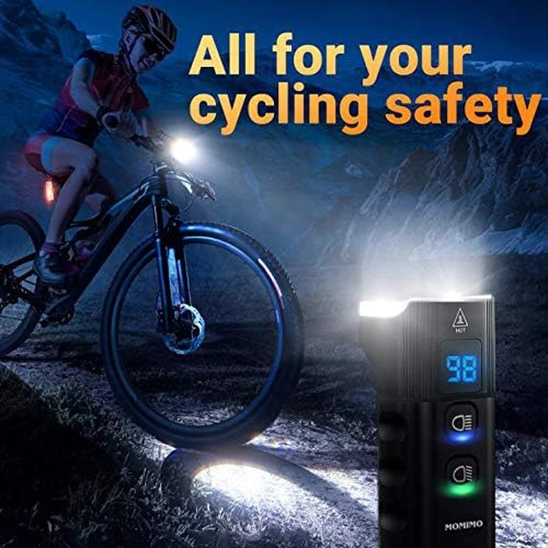 【Super Bright】The bicycle light is very bright with the maximum output is 2000 lumens, and the four LED lights cover a wide range up to 656ft/200m, it allows you to ride at night to see wider and further areas, also makes your night riding safer. 【13 Lighting Modes】The bike headlight has 13 adjustable light modes, free to switch according to your needs. Suitable for various scenes, such as cycling, camping, night fishing, caving, hunting and more. 【Intelligent LED Display】 Our bicycle front light is equipped with an LED digital display, it can show you the battery left in digital format so that you can know when the power is fully charged and how long the battery available. 【IP65 Waterproof】 This bicycle lights with IPX65 waterproof, it will bring you visibility lights for extra safety work in bad weather, also protect it against splashing water from any angle. Furthermore, with aircraft-grade aluminum alloy casing makes it durable and strong. 【USB Rechargeable】Built-in 7200mAh rechargeable battery for bike front light. You can charge it via any USB charging port with 2A output, also you can use it as a power bank to charge your smart phone, which is very important in outdoor emergency situations. Product Description BETTER LIGHT & BETTER LIFE Ultra Bright 4 LED bicycle lights meet your perfect expectations for the brightness of bicycle lights. With this bike light set, it will brighten your path and keep you safe. Suitable for Different Bikes Universal size to fit all kinds of bikes: Mountain Bikes, Road Bikes, City Bikes or any Bike including Kids bikes. Note Make sure it dry before charging to keep safe. Please do not leave it in heavy rain for a long time. Do not look at or shine this lamp directly into eyes. Headlight Specifications Lamp Beads: XPG-3 Waterproof: IP65 Visible Range: 656ft/200m Range Angle: 160° Light Mode: 13 modes Material: aluminum alloy Running Time: 16h max. Battery Capacity: 7200mAh USB Rechargeable The bike front light can be charged directly with any USB charging port with 2A output, such as mobile phone USB charger, power bank USB port and laptop USB. IP65 Water Resistant No need to worry when water splashed on the led lights especially in rainy or snow weather, as our bike front headlight has IPX65 waterproof performance. Used as a Flashlight This 2000 lumen bike headlight can be used as a flashlight. Keep you safe when outside Hand grip design is portable GoPro Mount We equip a GoPro mount with the light in order to make you more convenient Package Contents 1 X Bike Headlight 1 x 360° Degree Rotation Holder 1 x Type-C Charging Cable 1 X GoPro Mount Versatile Use Not only a bike light, also can be used as an emergency flashlight, torch, helmet headlight. Suitable for cycling, camping, walking, or other nighttime work. 13 models for you