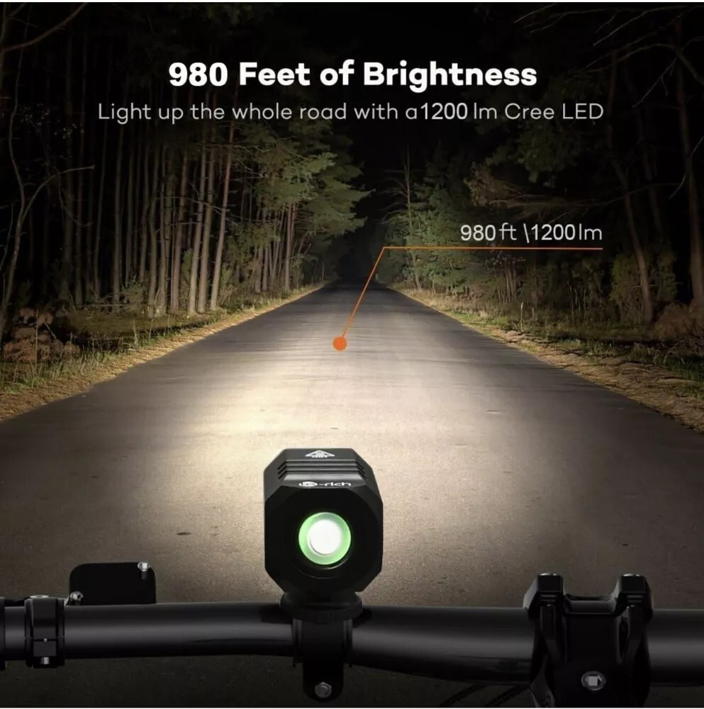 This bike light is a game-changer! The 1200-lumen output is insanely bright, making night rides feel safe and clear. I love that it’s USB rechargeable—no more buying batteries. The waterproof design handles rain without a hitch, and the beam adjusts perfectly for road visibility. Super easy to mount and lasts for hours. A must-have for cyclists!