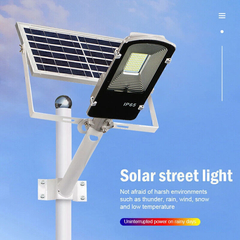 Product Description Super Bright Commercial Solar Street Light Dusk to Dawn Road Lamp+Pole+Remote Specifications: ★【Super Bright】 Equipped high quality 2835 SMD LED beads;Provides over 150w light 15000 Lumens of brightness and reaches 200-300m² illumination range ;No struggle to see in dark places;Built-in 3.2v-13.5Ah large capacity lithium battery with a long life of 50,000+ hours;Working time is up to 20 hours after 4-6 hours fully charged,about 72 hours in dim mode.;Long-lasting and highly efficient solar panels,fast charging and high conversion rate ★【Dusk to Dawn Sensor & Remote Control】 Built-in smart sensor,lights will turn on automatically at dusk, and turn off at dawn. Upgraded Remote Control -ON/OFF Function;Auto Mode- automatically lights up at night,automatically turns off during the day;Timing function-3H,5H,8H ;.Full / Half brightness mode;Brightness increase /decrease mode; ★【Easy to Install】 The kit contains the installation accessories set. You can effortlessly mount them on a tree, pole, balcony, wall, or any desired outdoor spot. These solar powered street lamps can be instantly mounted as long as there is a wall or a pole. ★【Durable&Sturdy&Maintence-free 】 Thickened die-cast aluminum case;IP65 waterproof rating; Dust-proof, rust resistant, corrosion resistant, and bad weather resistant; Designed to withstand any severe weather condition, including snowstorms and hurricanes, ultra reliable;Cost savings;No need to run pesky wires under your lawn, and no batteries that need replacing at the most inconvenient times.Safe-less risks of fires and burns; Environmentally friendly; ★【Widely Used】 Ideal for Plaza, Park, Garden, Courtyard, Street, Walkway, Pathway, Campus, Farm, Perimeter Security etc;Also can be used in Urban roads, industrial areas, residential areas,Elegant design,it will add a nice touch to your outdoor space;an excellent choice for any outdoor Package Content Per Box: 1 x Solar Lamp 1 x Solar Panel 1 x Remote Control 1 x Accessories; Notice: Please allow 1-3cm error due to manual measurement and make sure you do not mind before ordering. Please understand that colors may exist chromatic aberration as the different placement of pictures. Versand Payment We accept payment via Paypal only. Payment must be completed within 10 days. If you have any problems about payment, please contact us via ebay message. Delivery details We only ship to confirmed Paypal addresses. Please comfirm that your paypal address is in line with your shipping address. Please kindly note that the c ombined shipping is not provided because the shipping fee is calculated by weight. Also, the each additional item means exactly the the same color and size. It takes about 7 -15 working days to US; about 10-30 working days to other countries. Transit time may be a little delayed because of the bad weather and customs inspection . If you do not receive your item within 30 working days since payment finished, please contact us immediately for further assistance. Contact us We strive for 100% customer satisfaction! Positive Feedback is very important to us. If you have any questions, p lease feel free to contact us via "Ask seller a question" . We will reply your email within 24 working hours. Versand Payment We accept payment via Paypal only. Payment must be completed within 10 days. If you have any problems about payment, please contact us via ebay message. Delivery details We only ship to confirmed Paypal addresses. Please comfirm that your paypal address is in line with your shipping address. Please kindly note that the c ombined shipping is not provided because the shipping fee is calculated by weight. Also, the each additional item means exactly the the same color and size. It takes about 7 -15 working days to US; about 10-30 working days to other countries. Transit time may be a little delayed because of the bad weather and customs inspection . If you do not receive your item within 30 working days since payment finished, please contact us immediately for further assistance. Contact us We strive for 100% customer satisfaction! Positive Feedback is very important to us. If you have any questions, p lease feel free to contact us via "Ask seller a question" . We will reply your email within 24 working hours. powered by