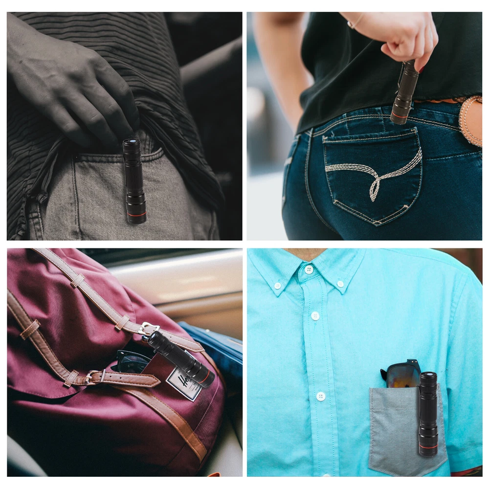 Specifications 1.Material: Aluminum alloy 2.Switch: Press switch 3.Zoom: zoom in & zoom out 4.Battery: Built- in battery (Include) 5.Switch modes: 3 modes: Bright-Dim-Flashing 6.Charging mode: USB charging 7.Colour: black Water Resistant design, but don't deep it into water. Package Included: 2x Flashlight 2x USB Cable 2x Gift Box LED Flashlight LED Flashlight Features 1.Three lighting modes for free switch as desire with simple pressing button operation. 2.Built-in mini rechargeable battery with USB charging cable to provide continuous illumination. 3.mini flashlight with high brightness, suitable for cycling, hiking, camping and other outdoor activities. Specifications 1.Material: Aluminum alloy 2.Switch: Press switch 3.Zoom: zoom in & zoom out 4.Battery: Built- in battery (Include) 5.Switch modes: 3 modes: Bright-Dim-Flashing 6.Charging mode: USB charging 7.Colour: black Water Resistant design, but don't deep it into water. Package Included: 2x Flashlight 2x USB Cable 2x Gift Box Payment Delivery details Terms of sales About us Contact us Payment We accepct payment via all methods. Delivery details Your order will be dispatched within 1-3 working day of receive payment. Terms of sales You can return the product to get a refund or a replacment within 60 days of purchase. The item returned should be in their origainal status. About us If you are highly approve our products and service, please leave us a 5-star positive feedback. And recommand our ebay store to your relative and fiends. Contact us Please feel free to contact us if you have any questions for the item and order. Thanks.