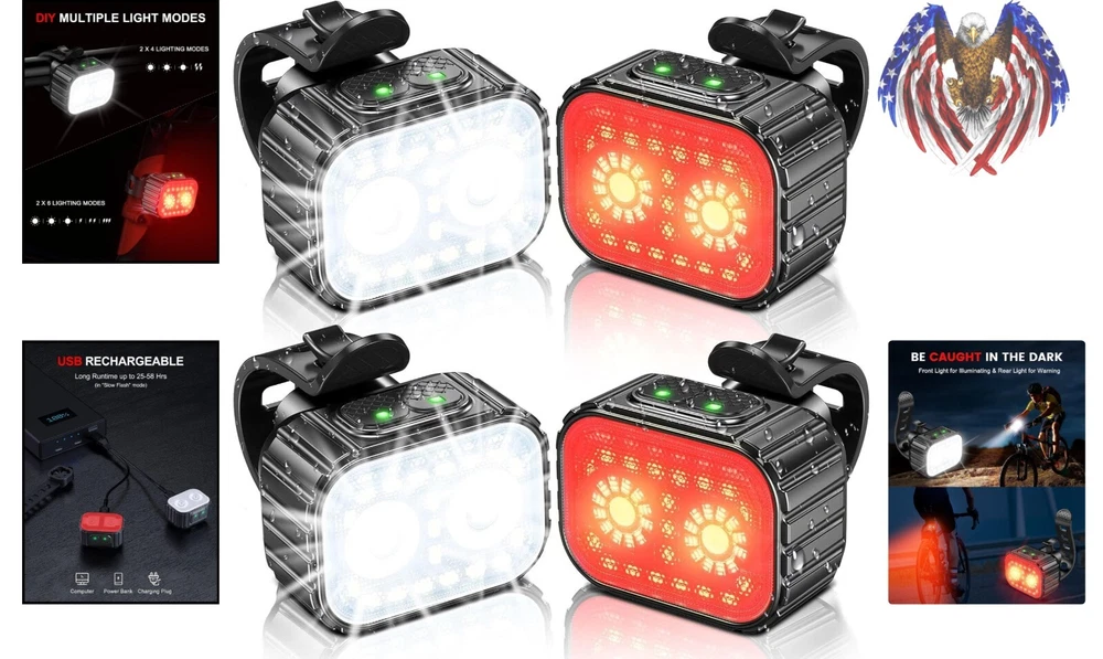 Super Bright 8+12 Mode Bicycle Lights - Long Lasting Rechargeable Cycling Safety ‹ › ‹ › ‹ › ‹ › ‹ › ‹ › ‹ › ‹ › ‹ › Super Bright 8+12 Mode Bicycle Lights Long Lasting Rechargeable Cycling Safety Features: Each bike light is engineered with 2 main LEDs and 19 surrounding auxiliary LEDs. Independent switches control your light experience with the front light offering 2 X 4 modes and the tail light featuring 2 X 6 modes. Long-lasting battery - the front light has an impressive 1100MAH capacity and the tail light 350MAH. In ISO Slow Flash mode, enjoy up to 58 hours of illumination from the headlights and 25 hours from the taillight. Battery indicator alerts you when the charge drops below 20%—never worry about being left in the dark. IPX6 waterproof rating ensures excellent performance even in the harshest weather conditions. USB port with a waterproof silicone cover for extended life and protection against the elements. Effortless installation process requiring no tools or extra help—perfect for all ages. A versatile lighting solution for not just biking, but also hiking, camping, or as an emergency flashlight. Benefits: Optimal brightness for maximum visibility, ensuring your safety in various conditions. Durable and long-lasting design that withstands daily use. Waterproof construction allows for worry-free riding in rain or fog. Ease of installation makes it accessible for anyone, including children. Gifts that matter – an ideal present for cycling enthusiasts and outdoor lovers. Why choose our Super Bright Bicycle Lights? Illuminate your path with our Super Bright 8+12 Mode Bicycle Lights, engineered to provide exceptional luminosity and versatility for every cycling journey. With multiple brightness modes and long battery life, these lights are designed to meet the needs of any rider. The IPX6 waterproof rating ensures you can ride through weather challenges without a second thought, while the easy installation process allows for hassle-free usage. Whether you're commuting in the evening, traversing technical trails, or simply enjoying a night under the stars, our bike lights are an essential accessory for safety and enjoyment. Gift the joy of secure cycling or keep them for your own adventures—experience the difference today! Shipping Free & Fast Shipping - We offer free shipping to most of the USA with a normal delivery time of 3-7 days. However, due to the current situation, additional delivery time (up to 3 weeks) may be required for some items. Alternative Carriers - We may use alternative carriers (e.g. USPS, FedEx, UPS, etc.) to ensure your package arrives safely and on time. Due to the use of multiple carriers, we are unable to provide a tracking number automatically. Handling Time - Orders are processed and shipped within 1-2 business days of receiving cleared payment. Shipping Restrictions - Shipping to Alaska, Hawaii, Puerto Rico, Guam, and other US territories may incur shipping charges or delivery restrictions. Please contact us before ordering, or your order can be refunded/cancelled. State Restrictions - There may be restrictions based on your state of purchase. For example, certain items may not be shipped to California due to state regulations. Contact for Tracking Updates - If you require tracking updates or have any concerns about the delivery of your order, please feel free to contact us, and we will be happy to assist you. Return 30-Day Hassle-Free Returns - We want you to be completely satisfied with your purchase. If you are not, you can return the item within 30 days of receiving it for a full refund or exchange. Easy Return Process - To start a return, simply contact us and we will provide you with a prepaid return shipping label and detailed instructions. Restocking Fee - There are no restocking fees for returns. However, the buyer is responsible for return shipping costs if the return is not due to a seller's error. Refund Processing Time - Refunds will be processed within 5 business days of receiving the returned item in its original condition. Payment We accept all major credit cards, PayPal, and Apple Pay for your convenience. Your payment information is secure and encrypted to ensure a safe and seamless transaction. Please complete your payment within 3 days of purchase to avoid any delays in shipping. Feedback Your feedback is extremely important to us. We strive to provide the best products and customer service possible. If you are satisfied with your purchase, please take a moment to leave us a positive review. If you have any concerns or issues with your order, please contact us before leaving negative feedback. We are committed to resolving any problems and ensuring your satisfaction. Contact Us If you have any questions or concerns, please feel free to reach out to our customer support team. You can contact us through the eBay messaging system. We are available Monday to Friday, 9:00 am to 5:00 pm EST, and we will do our best to respond to your inquiry within 24 hours. Buy it now and enjoy a pleasant shopping experience! UPC: Not Set Model: Rechargeable Bike Lights Item Height: Rechargeable Bike Lights Item Length: Rechargeable Bike Lights Item Weight: 0.28 kg Item Width: Not Set Unit Quantity: 2 Features: Water Resistant,Rechargeable,High Brightness,Multiple Light Modes,IPX6 Waterproof,Battery Indicator,Easy to Install,Multiple Uses Material: Plastic,Polyvinyl Chloride Brand: Unbranded Type: Head & Tail Light Set Bulb Type: LED Color: Black Country/Region of Manufacture: Not Set MPN: Not Set Manufacturer Warranty: Not Set Unit Type: Unit Vintage: Not Set
