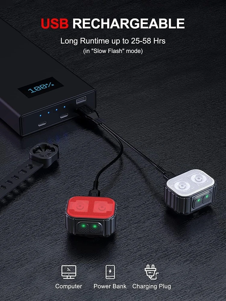 Super Bright 8+12 Mode Bicycle Lights - Long Lasting Rechargeable Cycling Safety