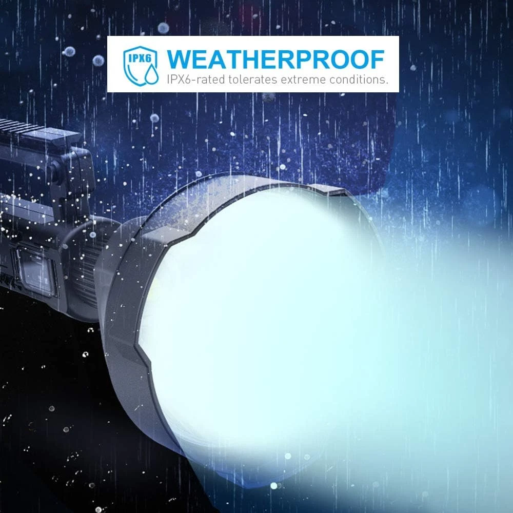 1. This spotlight is a game-changer for outdoor adventures! The brightness is insane—it cuts through darkness like nothing else. The four modes give great flexibility, and the waterproof design makes it super reliable in any weather. The USB rechargeable battery lasts forever, and it’s surprisingly lightweight for the power it packs. Perfect for camping, emergencies, or just having a high-powered light on hand. Totally worth it!