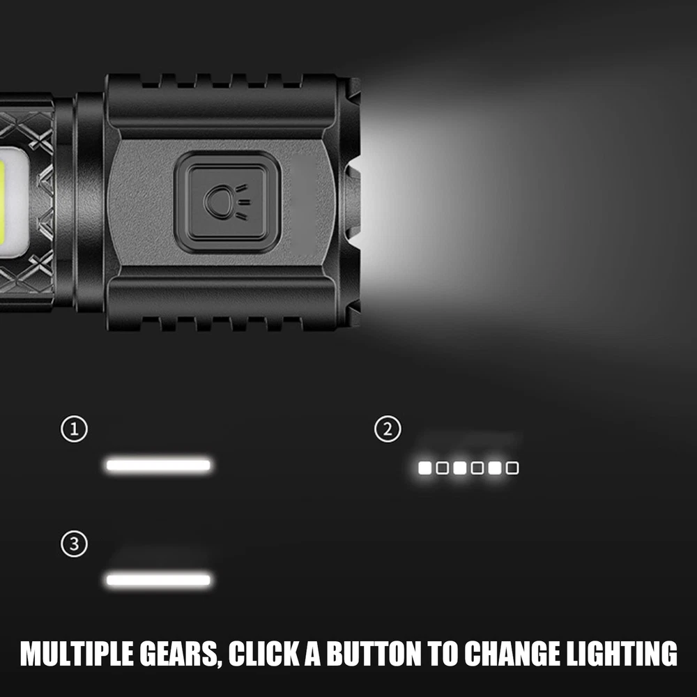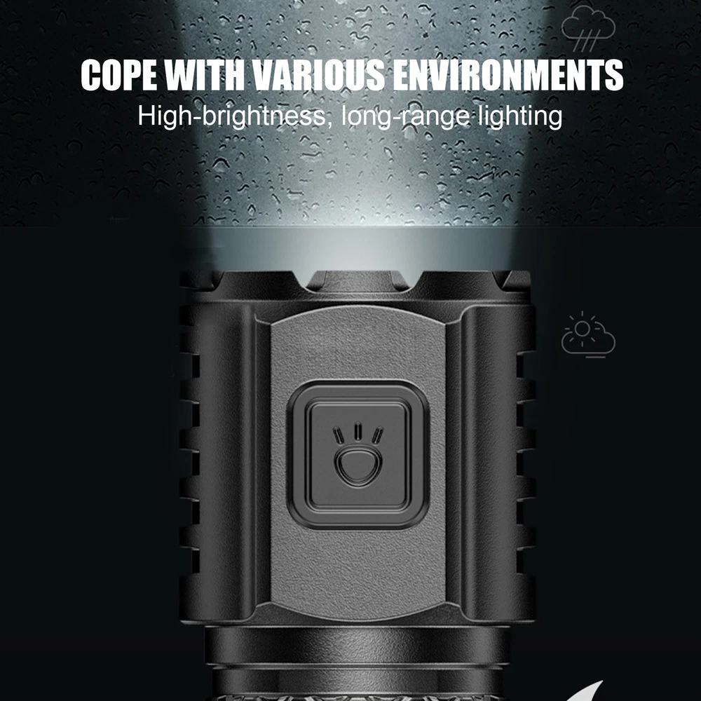 Super Bright LED Flashlight Rechargeable Outdoor Waterproof Torch With Hook Product Description Bullet Points: Adjustable Design: Featuring LED bulbs and a three-speed adjustment setting, this rechargeable flashlight is designed to adapt to diverse environments. Meeting different lighting needs is now effortless with our high-quality product Waterproof Function: With its great and safe waterproof design, this rechargeable flashlight gives long-lasting and continuous brightness, making it a convenient and safe tool for any activity Effortless Brightness: No dark path in your adventure. Rechargeable Flashlight provides steady and bright light, ensures safety and visibility in every step you take Long-Lasting Powers: With its robust built-in large-capacity battery, our rechargeable flashlight provides consistent use for hours on end without losing power Convenient to Install: Easily installed with a thoughtfully designed hook; convenient for suspending in tents or other areas, providing enduring light wherever required Illuminate your journey with our bright flashlight. Our high-quality LED lamp beads provide powerful lighting, with waterproof protection for any weather. Specifications: Product name: LED Flashlight Product material: ABS Product size: about 2.8x2.8x8.9cm/1.1x1.1x3.5 inches Product weight: 35g Power supply: Charging Usage time: 2-4 hours Maximum visibility: about 50m/164.04 feet Lumen: 1st gear: 190lum; 2nd gear: 30lum; 3rd gear: 150lum Product List: 1 * LED Flashlight Notes: Due to different lighting and screen settings, the product color may be slightly different from the picture. Due to the difference in manual measurement, please allow a 1-3cm difference in size. Payment 1.PayPal is a preferred Payment method. 2.You can make a Credit payment via Paypal.Paypal will let you use MasterCard,Visa to pay. 3.Payment should be completed within 3 days after auction closed, or unpaid dispute will be filed for an closing auction.An unpaid case will be filled after 4 days. Delivery details 1. We ship to many countries. 2. Delivery Time: Ship from China via Speedpak to US (takes 8-12 days) Ship from China via others shipping method to other countries (takes 15-60 days) 3. If you want to choose another address, please leave us a message on ebay.Please check your shipping address carefully before checkout,it can't be changed if order completed. Seriously promise:Refund or resend will be offered if item still not arrive in 7-10 business days. Just send us an email,we will give you a satisfied solution as soon as possible. Return policy 1.All item comes with Basic 3 Months Sellers Warranty, if item defective in 3 months,We will offer replacement without extra charger (including shipping fee) After we receive the defective item. If item Defective after 3 Month, Buyers can still send it back, We will contact suppliers or Manufactory for Warranty. Buyers Might Need pay the Shipping fee For resend the replaced item. 2.If item DOA(Dead of Arrival), Buyers can return it in 30 Days, we will replace it with new item after we receive DOA item. Please Contact us Before you sent the item back. 3.All item can be returned for exchange only. The buyer has responsibility for all return shipping including DOA or defective return. About Feedback When you receive the item and satisfied with the product, please leave positive feedback and 5 scores DSR. We will leave a 5 Scores DSR feedback for you. If, for any reason you are not satisfied with your purchase, please contact via Ebay Message and we will do our best to resolve it. Please don't leave neutral or negative feedback without any communition with .