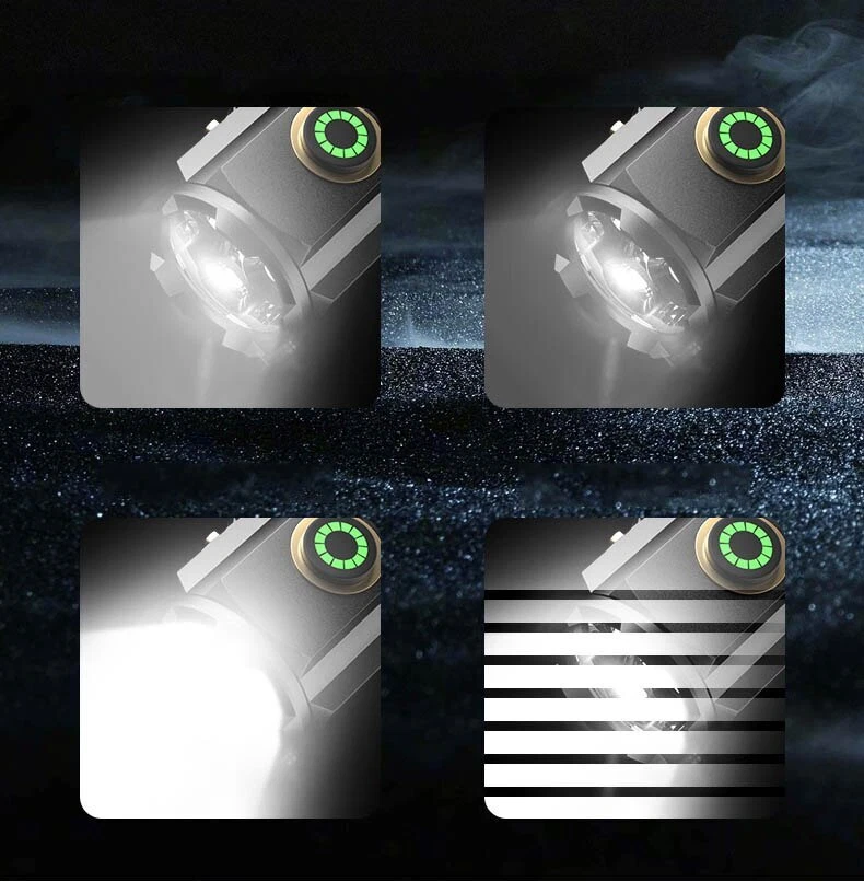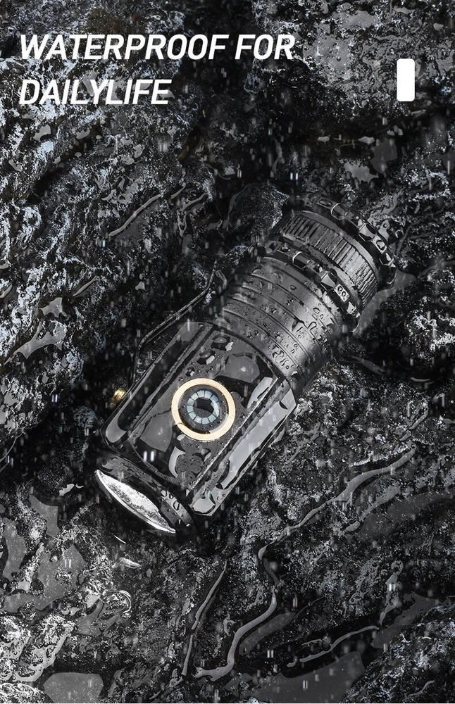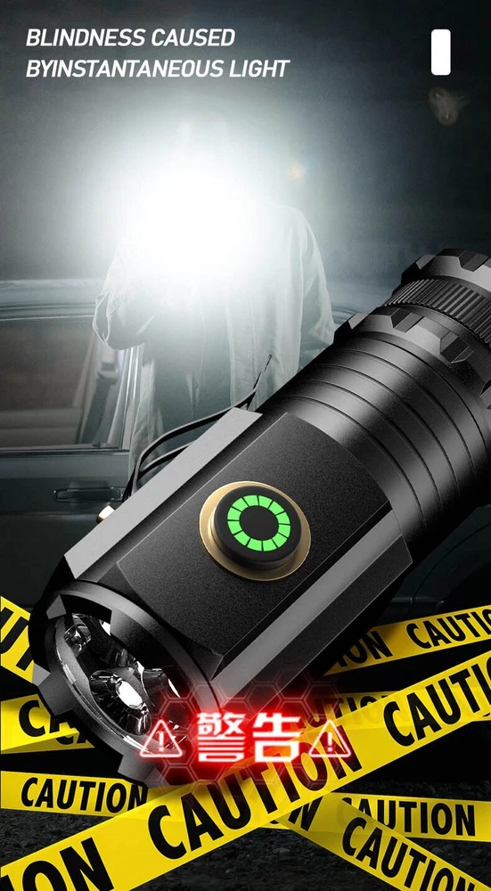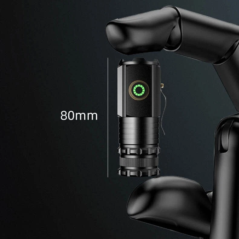 Flashlight Specifications: Maximum luminous flux: 2000 lumens. Range: 300m. Switch: central control switch. Gear mode:High-Medium-Low-Double click to enter Turbo Mode-SOS Maximum lighting time: 8H Charging port specification: Type-C Fast charging (Display green when fully charged, Low power display in red) Anti-fall: 1meters. Net Weight: 85g Gross weight: 150g Material: Aluminium alloy About batteries: Using 18350 small battery (800Mah) Product size: 80MM * 30MM Lamp bead model: 3 * SST20 super bright lamp bead Analysis of lighting gear: 5 lighting modes Strong light - Medium light - Weak light - Double click to enter TURBO Modes-Long press SOS Strong light: 1800LM Zhongguang: 1000LM Low light: 250LM Double click to enter TURBO Modes: 2000LM SOS (Press and hold for 3 seconds in any gear to enter SOS mode) Package Includes: 1 set flashlight