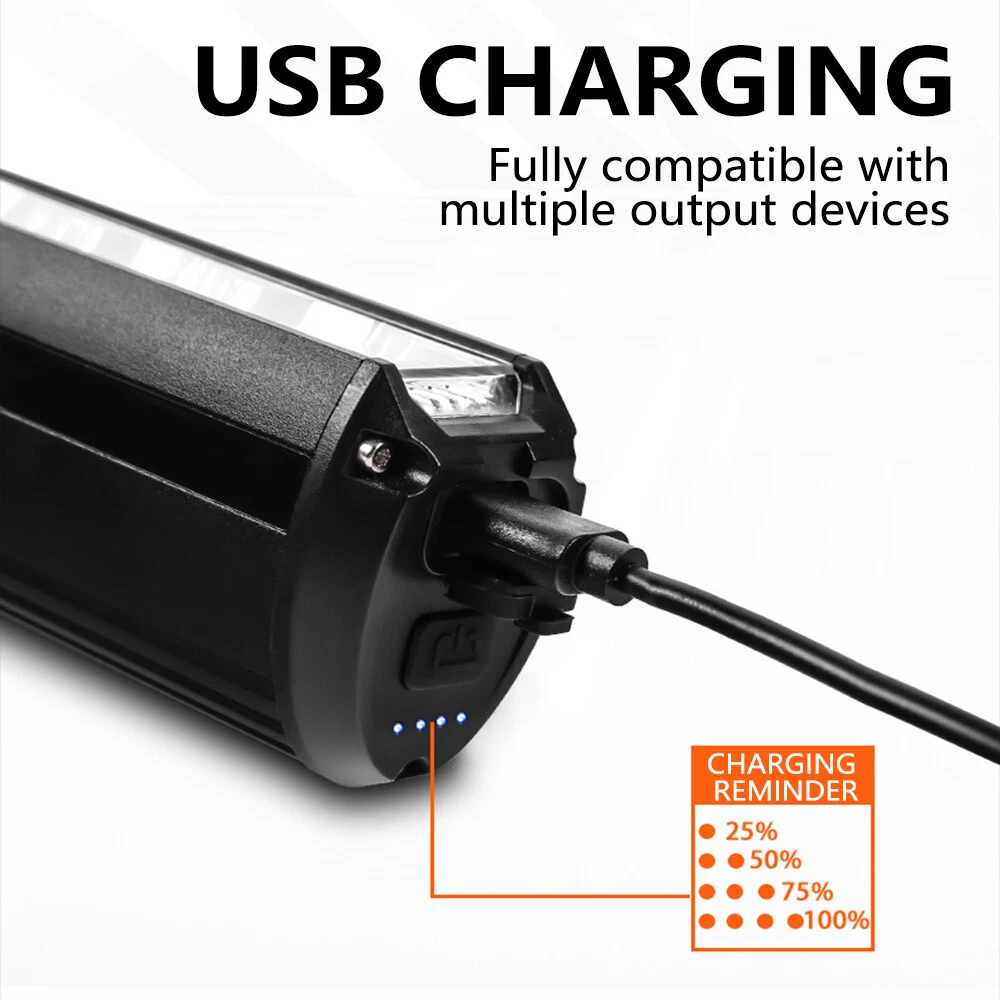 Bulb Type: LED Material: Aluminum Vintage: No Type: Bike light Color: Black Custom Bundle: No MPN: Does Not Apply Model: Bike light Waterproof rating: Rainstorm Level Lighting time: 1.5-3 hours Features: Advanced Design, USB, Water Resistant, Rechargeable Batteries, Flashing Charging interface: USB Type-c interface Brand: Unbranded