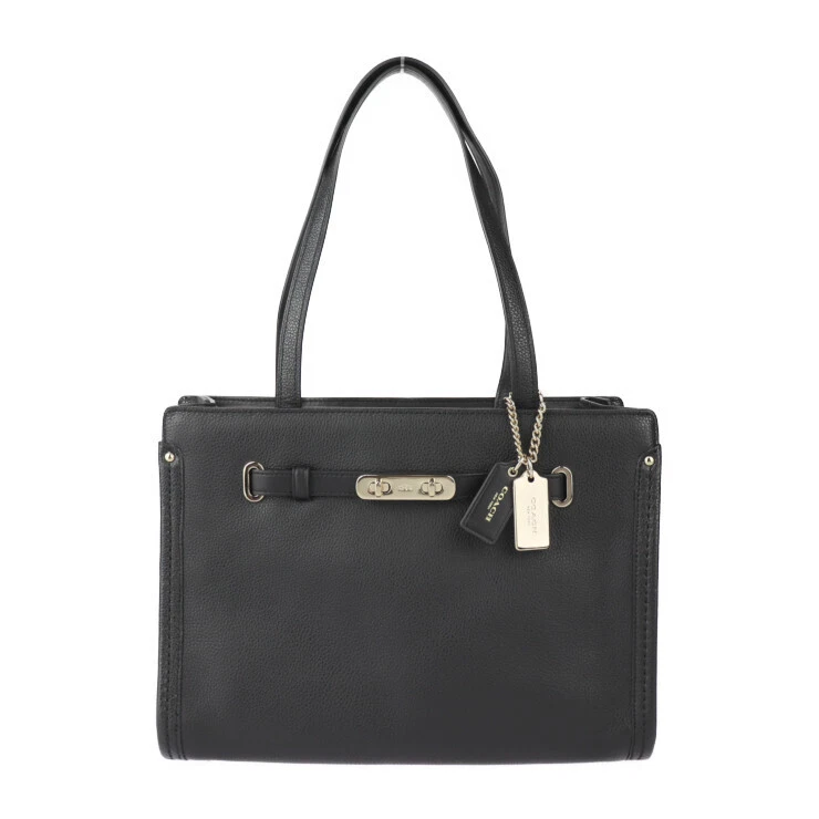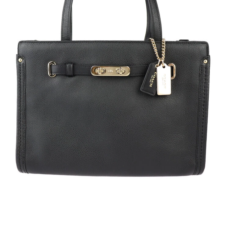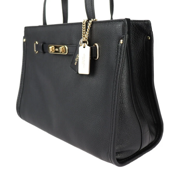 Super COACH Small Swagger Tote Bag Handbag 34915 Leather Black Gold Metal Fit
