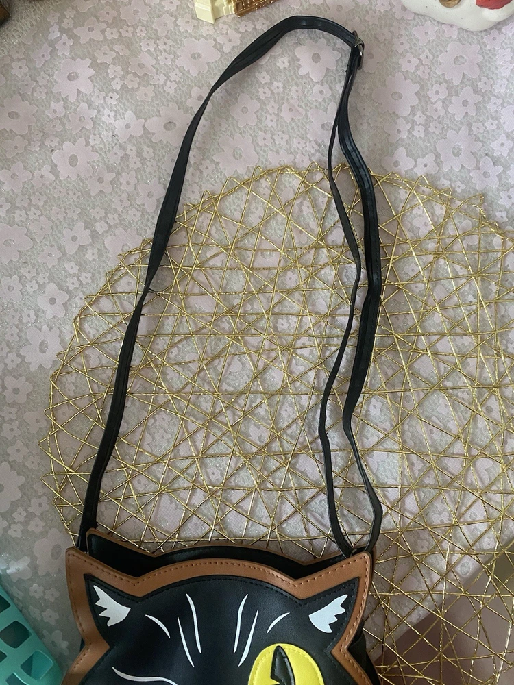 This black cat crossbody purse is the perfect accessory for any Halloween outfit. The vinyl exterior material is durable and the strap allows for easy carrying. The purse features a spacious interior for all your essentials. The black cat design is perfect for any woman who loves the spooky Halloween theme. The purse is ideal for everyday use or to add a touch of Halloween to your outfit. Get this cute and practical purse today!