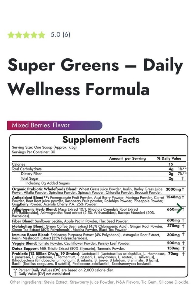 Super GREENS Daily Wellness Powder Mixed Berry Flavor 30 Servings