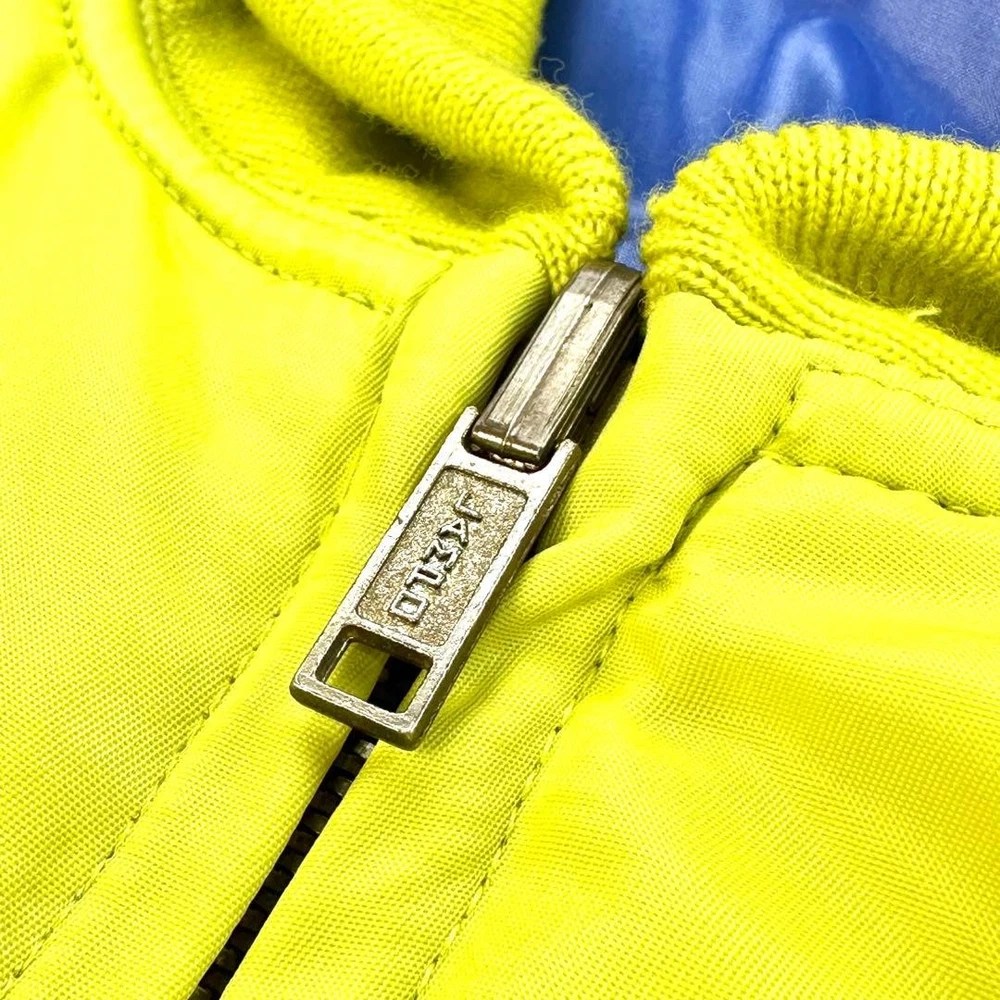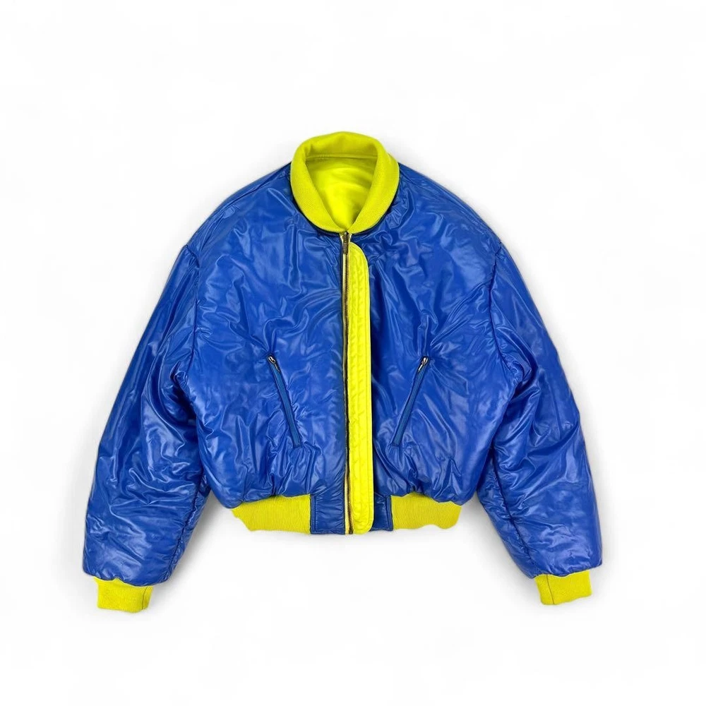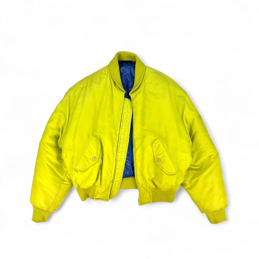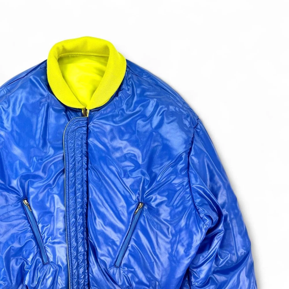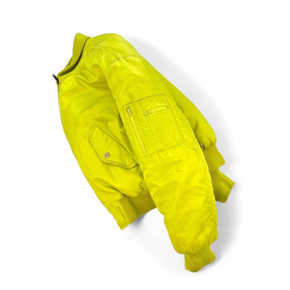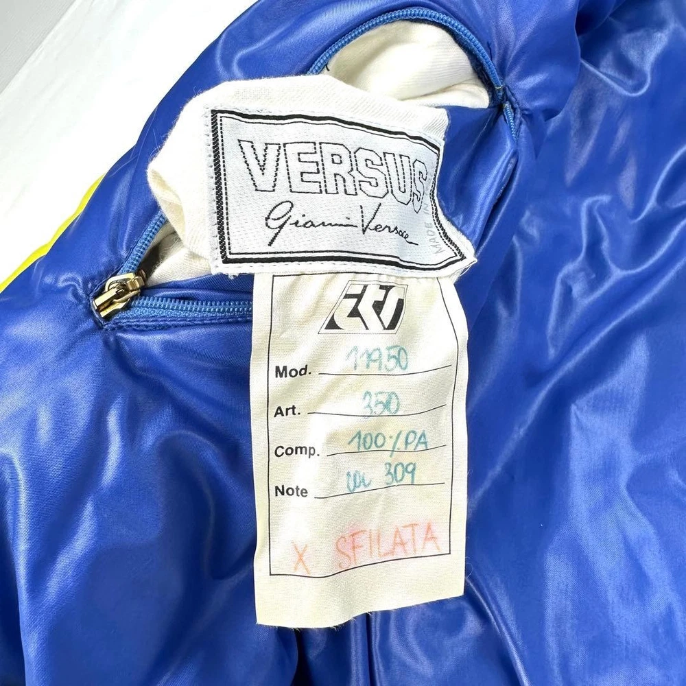 [Super God Rare] VERSACE Reversible Bomber Jacket Key Features This is a rare, reversible Gianni Versace VERSUS bomber jacket made in Italy. Featuring bold yellow and blue sides, it offers a striking silhouette with a fitted waist and shoulder emphasis. Crafted from 100% polyamide, it includes high-quality Italian zippers by Lampo. Size is approximately M-L, with detailed measurements provided. Perfect for fashion enthusiasts seeking a unique, luxurious piece. Measurements (cm): Shoulder width: Approx. 61cm Chest width: Approx. 64cm Sleeve length: Approx. 54cm Length: Approx. 61cm Material: 100% PA Item Specifics: Brand: VERSACE Model: VERSUS reversible bomber jacket Material: 100% Polyamide Color: Yellow, Blue Size: M-L Country/Region of Manufacture: Italy Specifications Brand VERSACE Country Japan Product Description Description Thank you for your interest. This item is not new, but a used item that was given away. Please check the photos for the condition of the item. Please understand that the condition of the item is subjective and the standard of evaluation and feeling may vary from person to person, so please be aware that this is a used item before bidding. Please check the photos for the condition of the item, such as scratches and stains. To prevent problems, please feel free to contact us if you have any questions about the size or other details of the item. We will be happy to adjust the price. We will do our best to ship your order as soon as possible. We will do our best to ship as soon as possible, but there may be delays during the busy harvest season. Remarks All the products we sell are obtained and sold by pawn shops that are authorized brands, so all the products we handle have been authenticated to meet our strict standards for authenticity, so please buy with confidence. Payment Supports managed payments Please pay within 5 days after auction is finished. About Us We are located in Japan. It's our pleasure to make you happy by proposing our recommend item. If you have any questions or request about items, please feel free to ask us. International Buyers - Please Note: -Importduties, taxes, and charges are not included in the item price or shipping charges. These charges are the buyer's responsibility. -Please check with your country's customs office to determine what these additional costs will be prior to bidding/buying. -These charges are normally collected by the delivering freight (shipping) company or when you pick the item up - do not confuse them for additional shipping charges. -We do not mark merchandise values below value or mark items as - gifts - The US and International government regulations prohibit such behavior. Thank you for your understanding ]]>
