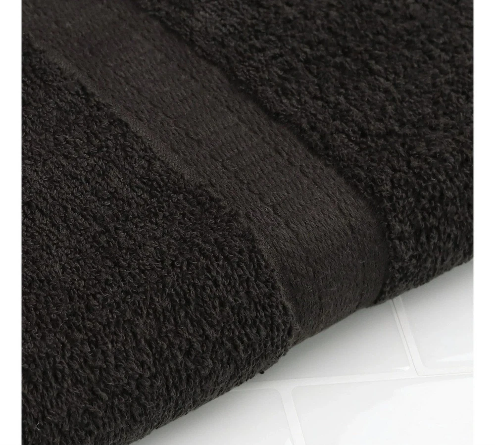 This is a single, solid black rectangular bath towel made of super luxurious 100% Egyptian cotton. It is extra soft with a GSM of 600-900, providing a high level of comfort and absorbency. The towel is part of a premium brand and features a braided, textured design for a touch of luxury. This bath towel is designed for adults and comes with one hand towel and one bath towel in the set, perfect for any bathroom or bedroom in your home.