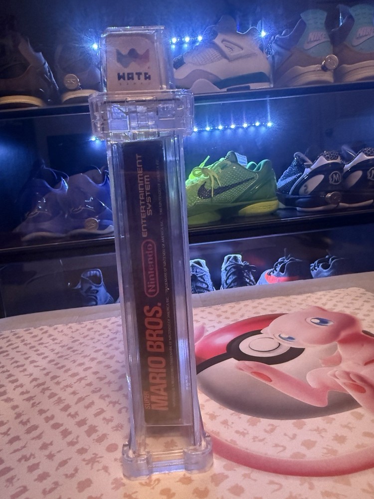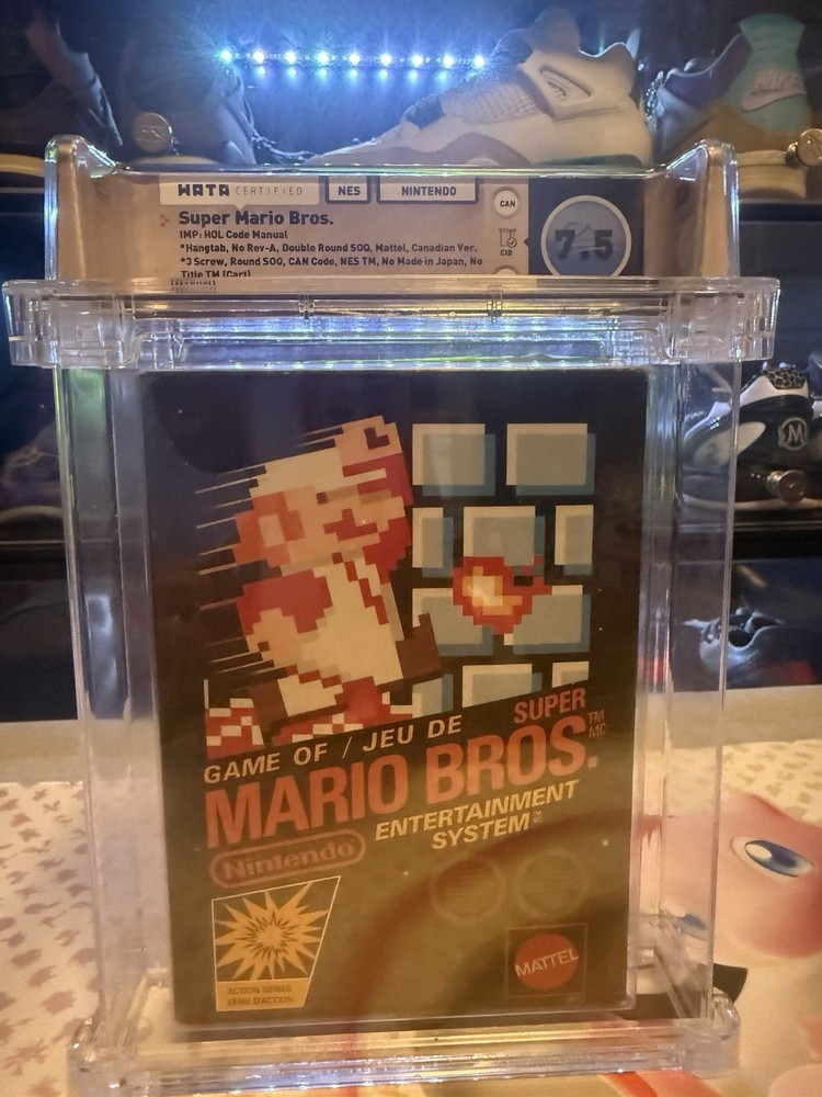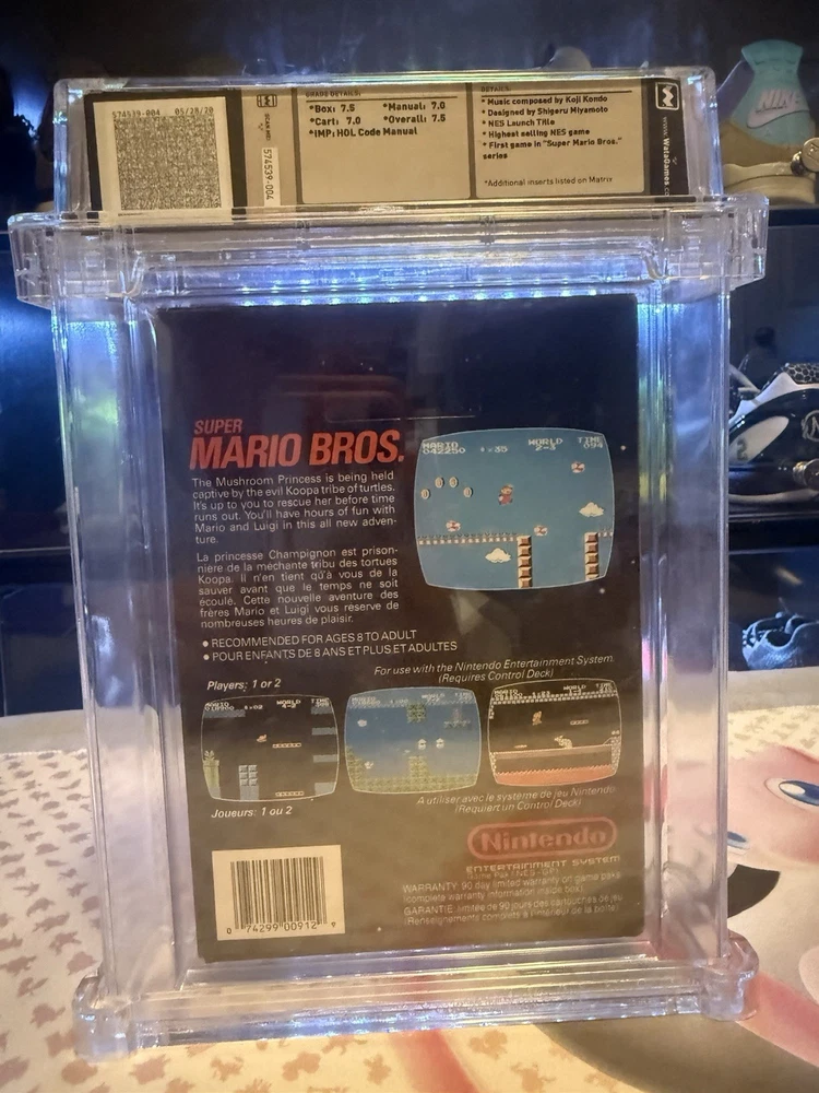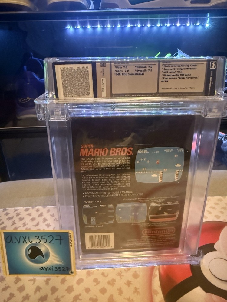 The product is a Super Mario Bros. game for the Nintendo NES platform, specifically the Canadian version with a Hangtab. It is WATA certified and comes with the manual included, making it a complete edition. Released in 1986 by Nintendo, this E-Everyone rated platformer and action-adventure game is part of the iconic Super Mario Bros. video game series. Made in the United States, this NTSC-U/C (US/Canada) version offers an authentic gaming experience for fans of the classic title. I will packaging safely…this is part of my collection.THANK YOU SO MUCH for looking!!!
