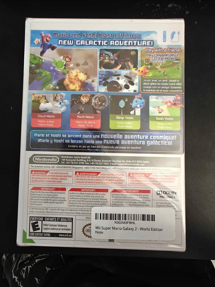 Release Year:2010MPN:RVLPSB4Egtin13:0689550239308UPC:0695639174279, 0045496901905, 0689550239308Publisher:Nintendobrand:Nintendo_desc_:Your favorite Italian plumber returns for more out-of-this-world adventures in Super Mario Galaxy 2 for Nintendo Wii. The mechanics of the platform-style play closely follow those of the first game, but with new levels, puzzles, collectibles, and power-ups to master. As in previous games, Mario's friend Yoshi can grab items with his tongue and spit them back at enemies. You can also use his sticky tongue to swing across chasms and reach new areas. New gadgets for Mario include a drill that allows the plucky plumber to bore through a planet's surface to the other side. Each 3D planet offers gravity-specific challenges to overcome, from working upside down to gliding from area to area. With plenty of new worlds to explore, Super Mario Galaxy 2 provides hours of family-friendly fun.Platform:Nintendo WiiGenre:Action & AdventureGame Name:Super Mario Galaxy 2Rating:E-Everyone