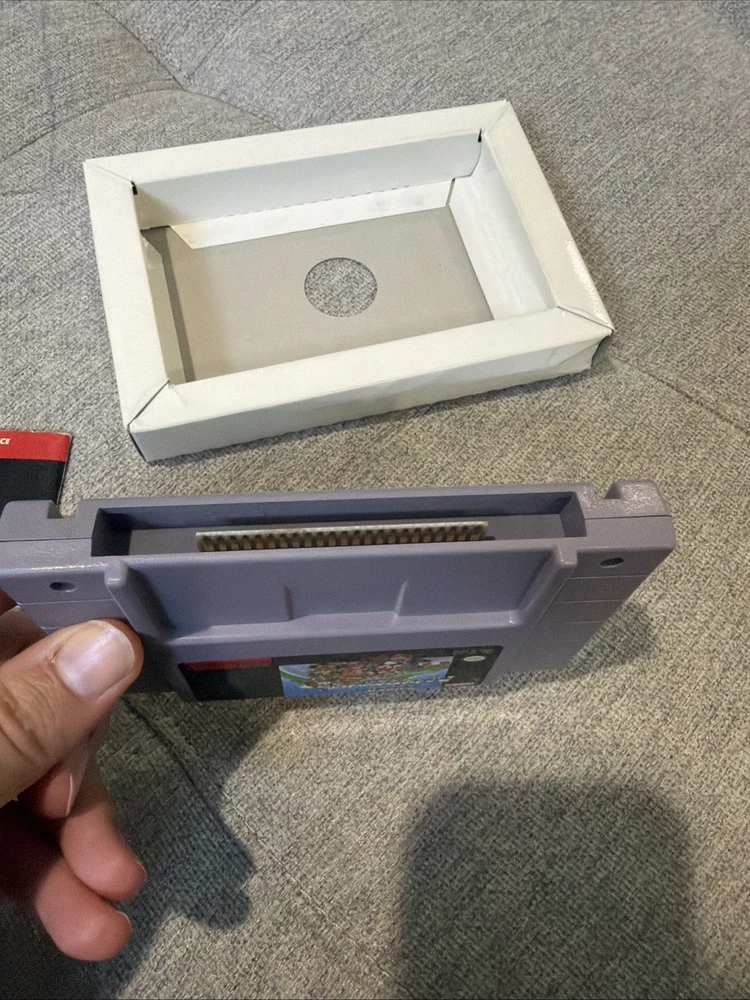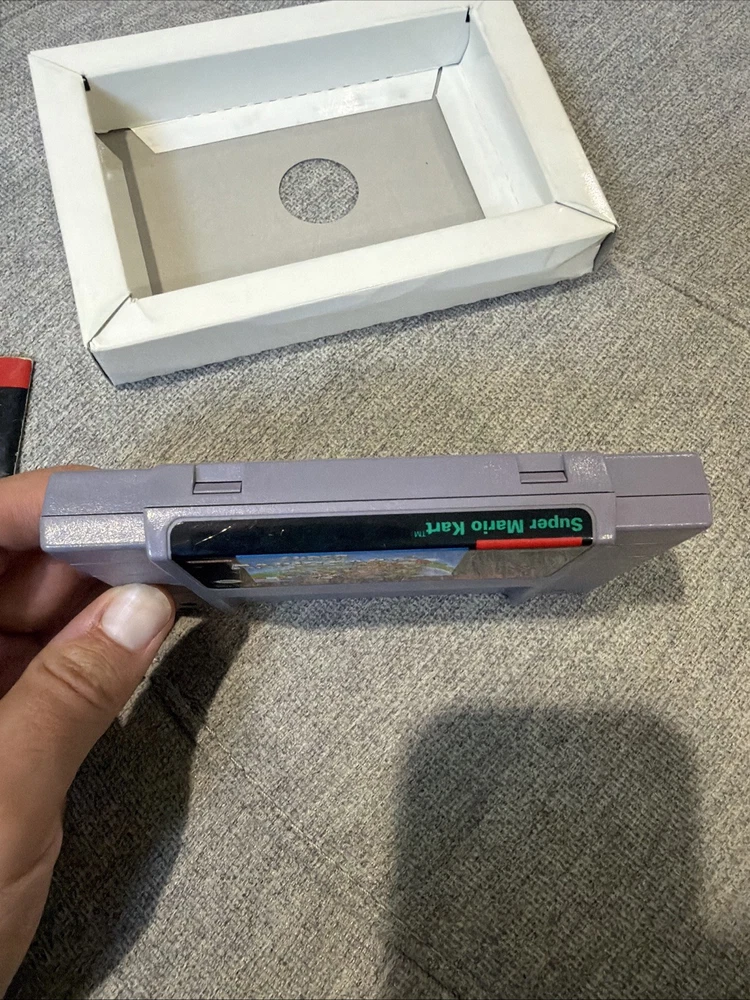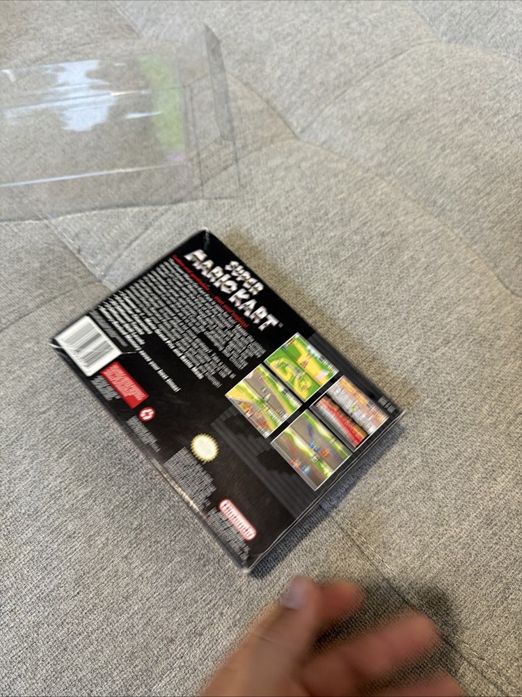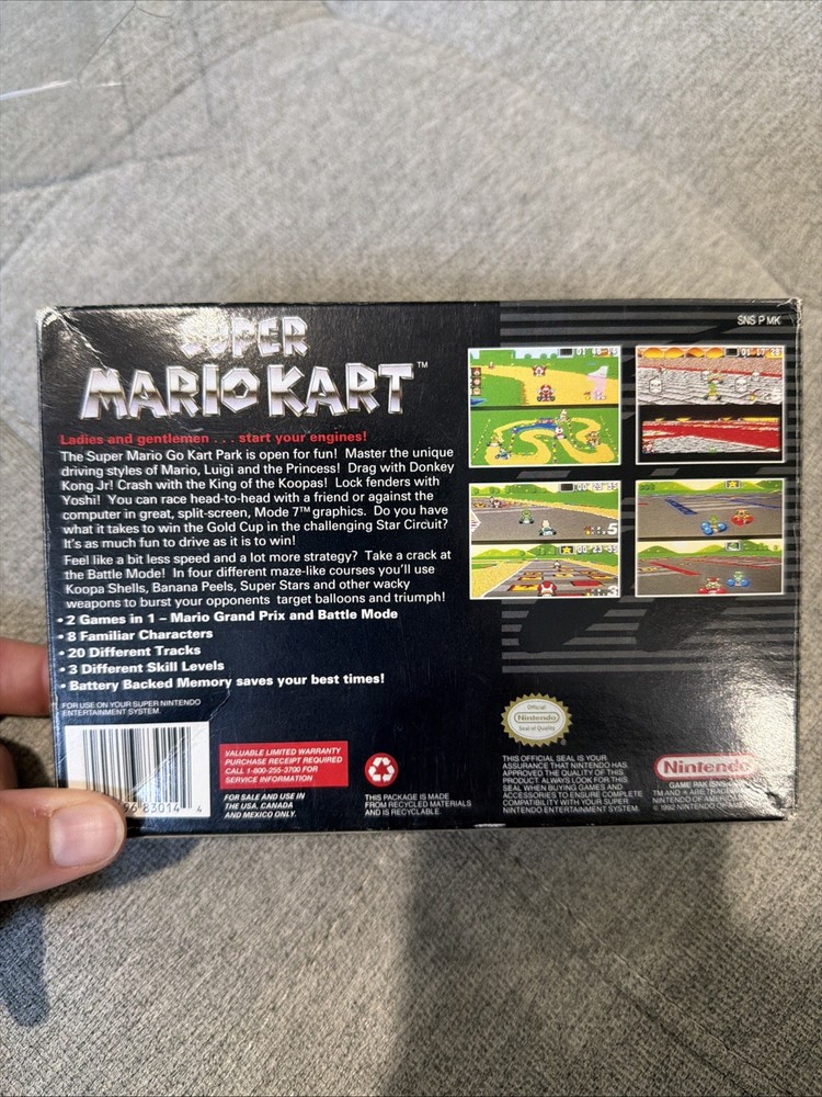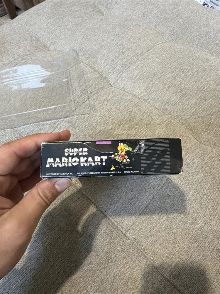 The product is a complete-in-box (CIB) Super Mario Kart game for the Super Nintendo SNES, released in 1992. This popular platformer game features the beloved Mario characters and offers exciting gameplay where players can enjoy racing and battling enemies in a fast-paced environment. With its classic gameplay and iconic characters, Super Mario Kart has become a beloved title in the world of video games.