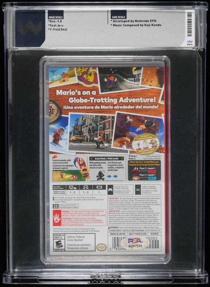 Super Mario Odyssey (Nintendo Switch) – Signed by Charles Martinet (Voice of Mario) – PSA-Authenticated Signature – Wata/PSA 9.8 A++ Up for sale is a premium, investment-grade collectible: a factory-sealed copy of Super Mario Odyssey for the Nintendo Switch, signed by Charles Martinet, the legendary and iconic voice of Mario. The signature has been professionally authenticated by PSA, and the game itself has been graded 9.8 A++ by Wata/PSA Video Games—one of the highest marks possible. ⭐ Key Highlights * Signature by Charles Martinet (Mario) * Signature Authentication: Verified and certified by PSA * Game Grade: 9.8 A++ – near-perfect, museum-quality condition * Factory-sealed Nintendo Switch release * Ideal for high-end Nintendo, Mario, and sealed game collectors 🎤 The Iconic Voice Behind Mario Charles Martinet has shaped the identity of Mario for over 25 years, becoming one of the most recognizable and beloved voices in gaming history. His signature on a top-tier graded Nintendo title adds substantial collectible and historical value. 🎮 The Legacy of Super Mario Odyssey Celebrated as one of the greatest entries in the Mario franchise, Super Mario Odyssey is widely considered a modern masterpiece. Its cultural impact and enduring popularity make signed, high-grade sealed copies extremely desirable and increasingly scarce.