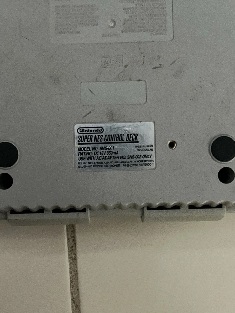 Super Nintendo Entertainment System SNES Console Bundle READ DESC Console is tested and working, very yellowed from fire retardant chemical in the casing. Comes with cables, 3 controllers and 11 Games INCLUDING super game boy ONE OF THE 2 ASCIIWARE CONTROLLERS DOESNT WORK PROPERLY