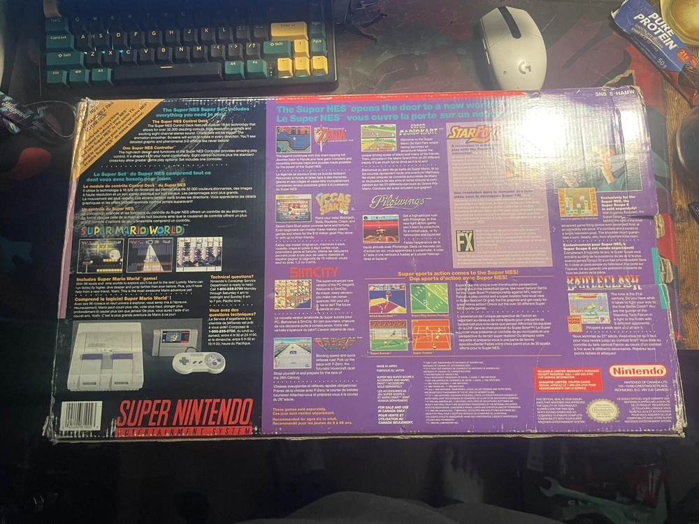 Complete set with manuals, two remote, all genuine wires, the game, and console, in all working order, box as seen better days but its not in the worst condition also "see pictures" foam in great shape. there is two little crack on the casing of the console CIB