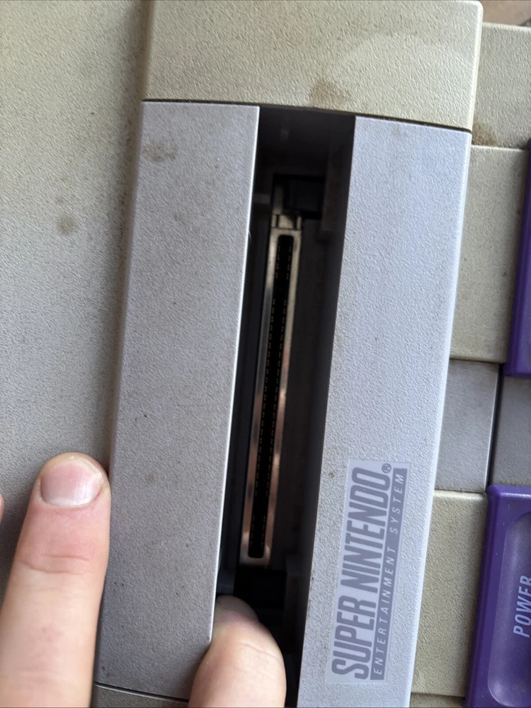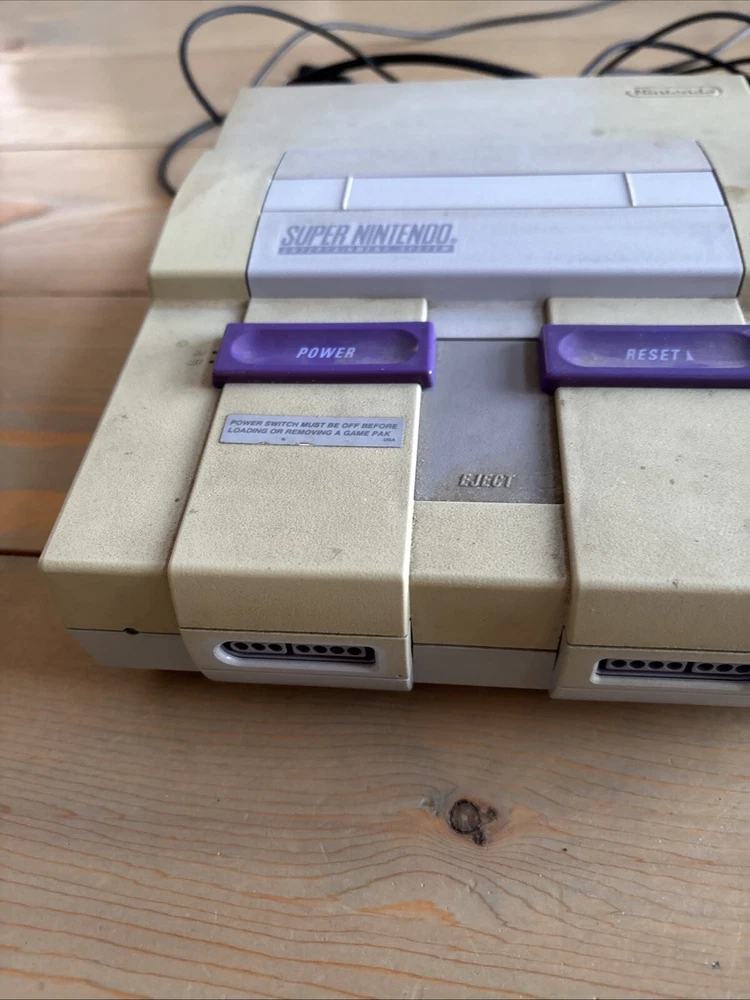 Used SNES that hasn’t been played in a while. I played all of the games on it the day before this listing. In general, the system worked. I played 8 different games. Sometimes, though, the game wouldn’t load on the first try. I don’t know if this is a console issue or game issue. It might work better with A/V cables instead of the original hookups too. System worked when tested but not 100% on the first try. Top of console is dirty even after cleaning.