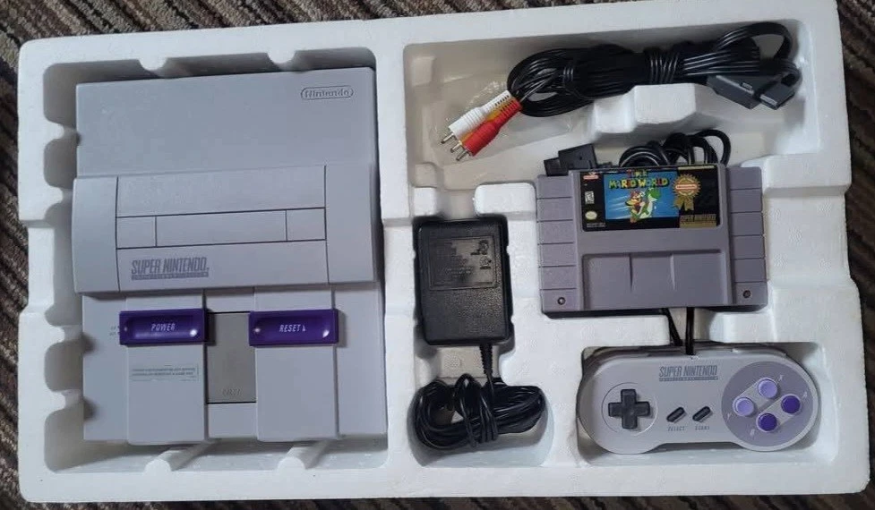 This is an amazing opportunity to own a classic video game console that will transport you back in time to the golden era of gaming. You can now purchase a Super Nintendo SNES console system set complete in box (CIB) that is in perfect working order. The console is manufactured by Nintendo and is designed for playing Nintendo SNES games. It is a must-have for all retro gaming enthusiasts out there.