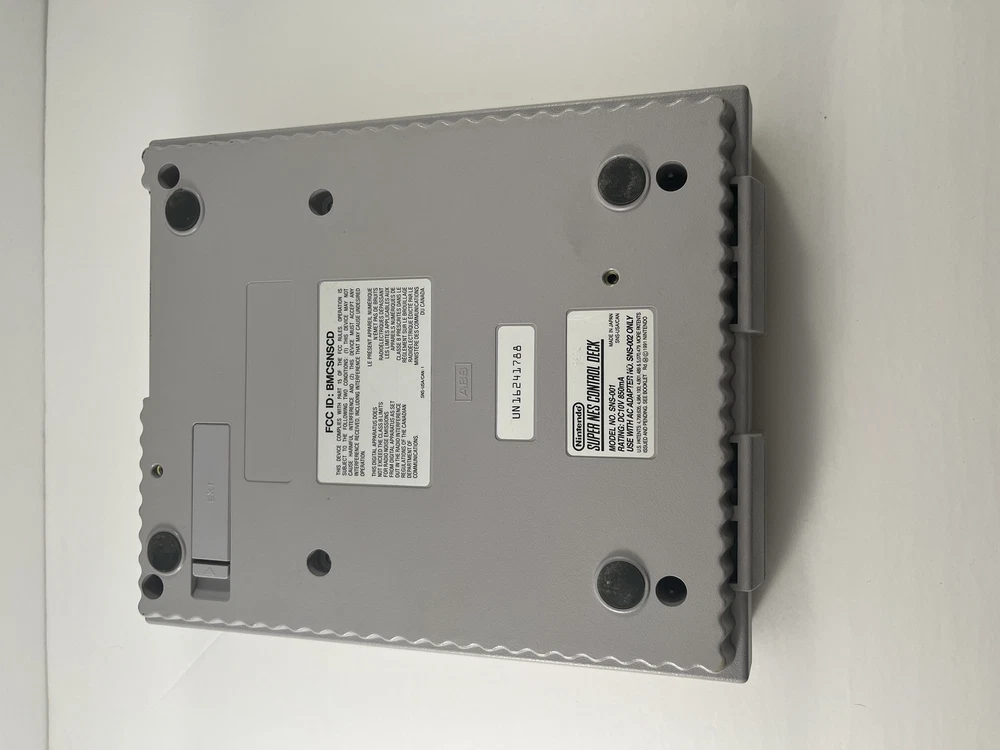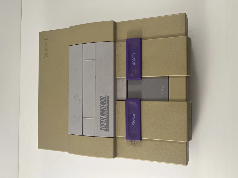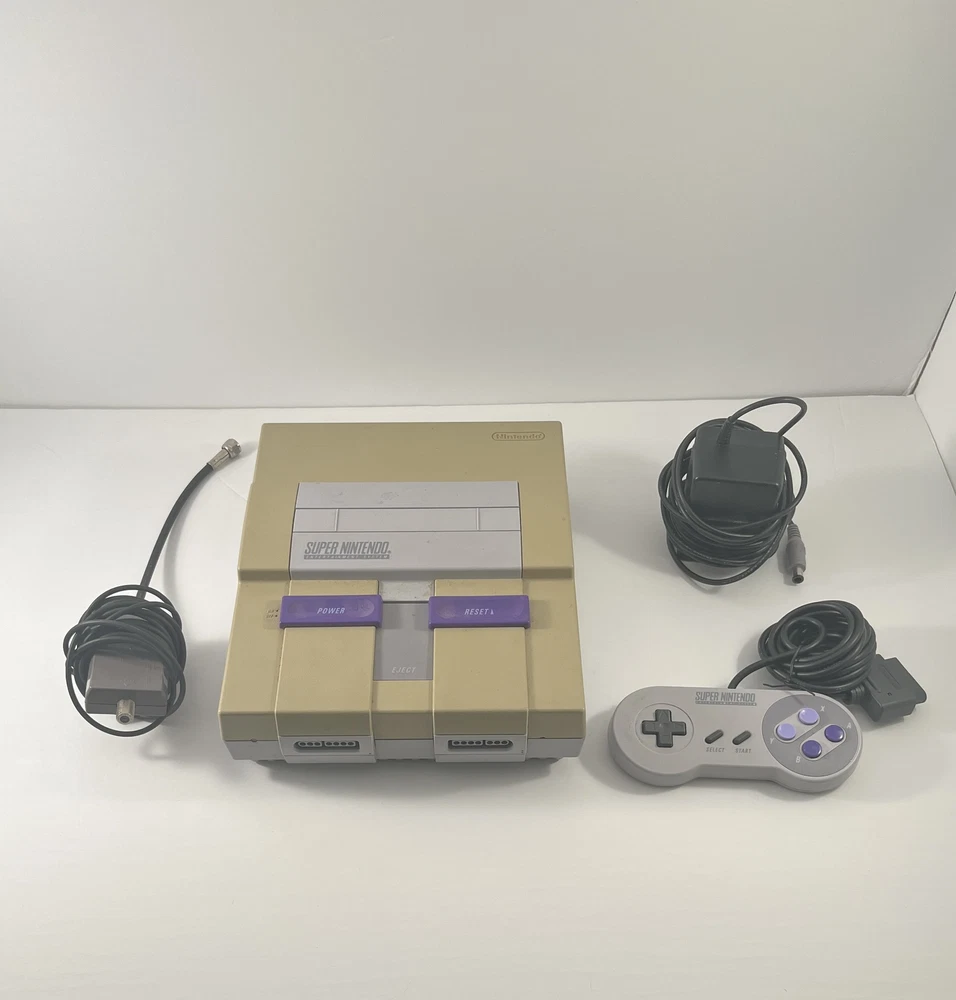 For Sale: Super Nintendo Entertainment System ~ 1 Controller ~ Cables ~ Condition: This is an original and authentic SNES that has been used and previously owned The Console has NOT been tested but should be functional This Console has been previously owned and used There are minor scratches on the top, sides, and bottom of the console as it has been previously used There is NO damage to the buttons or ports of the console There is yellowing on the top half of the console due to exposure to light but should not affect functionality All buttons on the top slide up and down as they should Details: The console is SNS-001 Original and Authentic The console includes 1 controller The console includes 1 power adapter The console includes 1 RF Cable The console DOES NOT INCLUDE Component RCA Cables to connect to modern style TV There is MINOR physical damage in form of small break on the front right of the console shown in pictures There are NO damaged pins on the controller or console Please note: There is NO box, NO RCA Component Cables i ncluded in this listing ________________________________________________________________ ________________________________________________________________ Please message us if you have any question about this product prior to purchasing. Condition of the item is always noted in the description so please take care to read carefully as we try our best to accurately provide the condition of the product! Customs duties and taxes for orders to the USA may be incurred and the buyer is to pay. This is not included in the shipping charge. We only offer shipping to Canada and USA, this allows us to keep our product cost lower and ensures buyer does not pay high shipping fees. We cannot control the shipping services so please allow room for Canadian and USA holidays that may delay the packages. Thank you ~