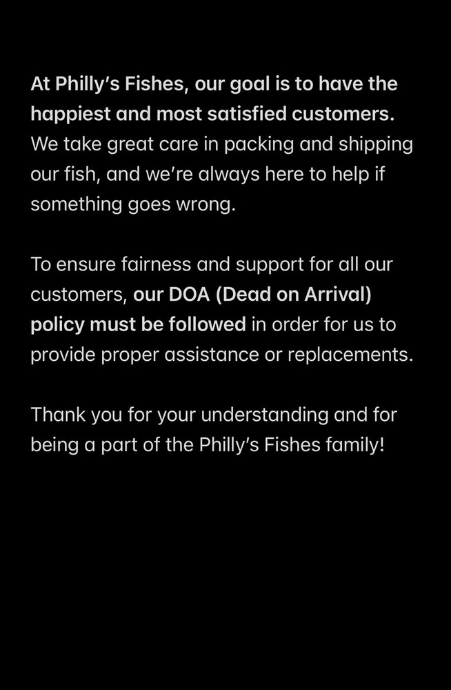 The fish arrived alive and beautiful. Doing real good in my aquarium.