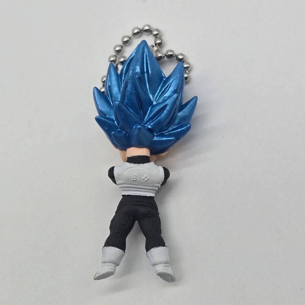 This limited edition Dragon Ball UDM Figure Keychain Toy features the iconic character Vegeta in his Super Saiyan Blue form. Made of high-quality PVC material, this keychain is a must-have for any Dragon Ball fan and collector. With vibrant blue coloring and intricate details, this Bandai-produced keychain is an ideal accessory for all occasions. It was manufactured in Japan and is part of the Anime & Manga theme. It is not personalized, signed, or intended for any specific convention or event. Get your hands on this unique Dragon Ball keychain now!