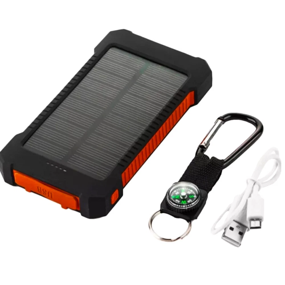Description 1.20000mAh power capacity: built-in lithium battery can charge iPhone more than 3 times. External battery charger with solar panel can recharge by solar or outlet. 2.Outdoor solar charger: water-resistant shock-resistant and dust proof solar phone charger, Perfect for outside activity as camping travel hiking constructions and many other emergency use. 3.Dual USB charger ports (1A / 2A): making fast charge for two devices simultaneously. 2A port for iPad / Tablets, 1A ports for phone / Bluetooth enabled devices. If you have trouble in an emergency situation, use the solar panel feature to charge the internal battery of the charger with dual USB charging ports, more convenient and practical. Specification: Battery Type: Li-polymer battery Material: ABS, PC, Silicone Capacity: 20000mAh Solar Panel: 1.5W Solar Charger: Max.5V 200mAh Input Voltage: DC 5V / 1A Package Included: 1x 20000mAh solar power bank 1xCable 1xmanual