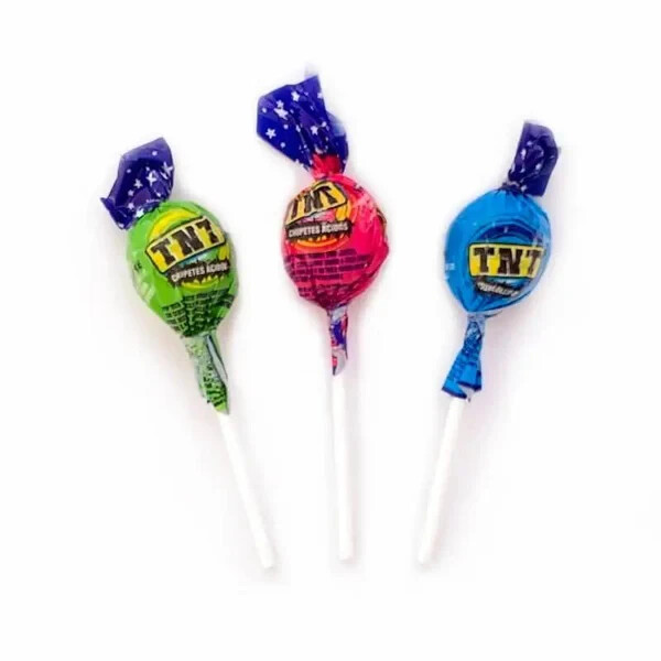 WORLDWIDE LOLLIPOPS CANDY SUPER SOUR TNT LOLLIPOPS WITH BUBBLE GUM CENTERS Flavors of red grape, strawberry, blue raspberry, and a tangy surprise of sour berry all in one bag 4 LBs LARGE POPS - Buy more than one and save 10% *Not responsible for customs delays, fees, taxes or issues FREE SHIPPING TO CONTINENTAL 48 STATES - PR, AK & HI require extra shipping Check out our store and become a follower for weekly discounts & coupons