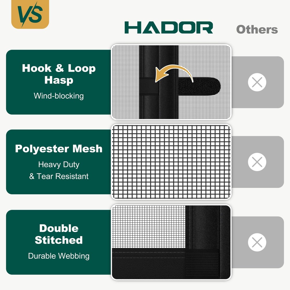 screen door mesh has hook and loop hasps at the middle and bottom. These hasps work to firmly secure the door mesh, preventing it from being easily blown away by strong winds. The door net is heavy duty polyester material with 18 x 16 mesh. It's high density, hard to break, and has good light transmittance. Lets in fresh air and sunshine, great for kids and creatures to move through freely. How to Select the Right Size: Measure twice, buy once. Our screen, screen sized 38 x 97 inches, fits a 36 x 96 inch door. The screen should be 1 inch longer and 2 inches wider than your door for proper mounting on the outer frame. Please measure your door carefully and make sure to order a size that will cover your door properly. Special Windproof Hasp: screen door mesh has hook and loop hasps at the middle and bottom. These hasps work to firmly secure the door mesh, preventing it from being easily blown away by strong winds. Hands-free and Pet Friendly: Our magnetic door has strong magnet blocks in the middle seam. It opens easily and closes automatically, even when your hands are full. Your pets can go through freely as they please, and door screen closes automatically. Upgraded and Sturdy Screen Door: The door net is heavy duty polyester material with 18 x 16 mesh. It's high density, hard to break, and has good light transmittance. Lets in fresh air and sunshine, great for kids and creatures to move through freely. Easy Installation: The magnet screen door comes with all the necessary push pins and a strong hook and loop tape, enabling quick and hassle - free installation. To achieve the best adhesive effect, make sure to clean and dry the installation surface thoroughly before starting the installation process. Versatile Usage: screen mesh door fits a wide range of standard sized doors, like patio, French, sliding glass, entry, back, front, interior, exterior, balcony, entrance, double, kitchen, and retractable doors. It's great for indoor and outdoor use.