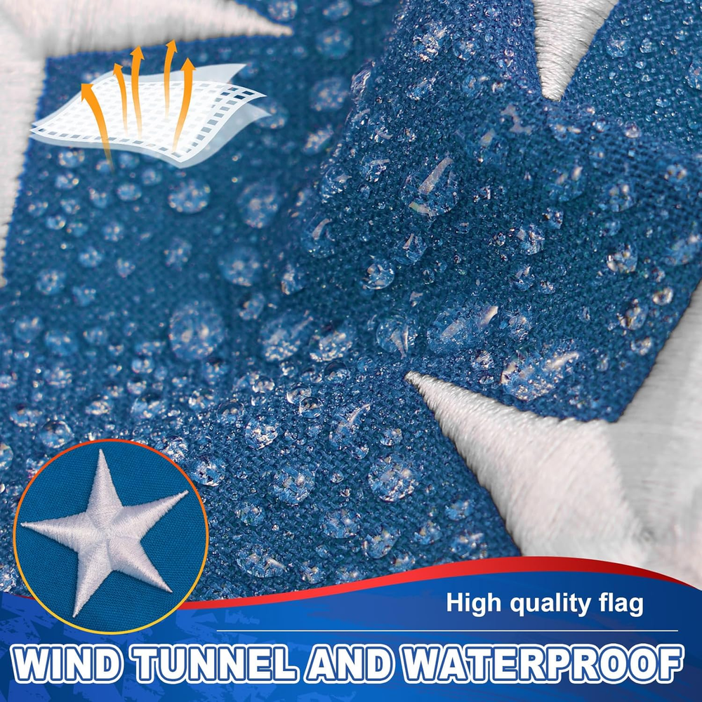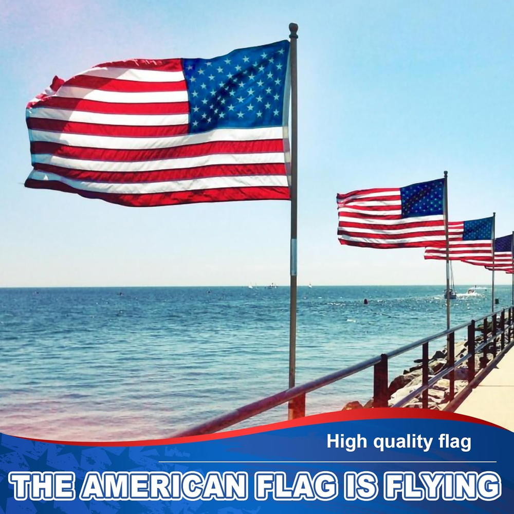 Heavy Duty American Flag Longest Lasting Material:We have deep-processed the American flag fabric, which has tenacious windproof and waterproof performance. It will make the flag show bright colors in different seasons, eye-catching, which will make you have an unspeakable sense of pride. Choose our 5x8 ft american flag, provide the best american flag best in usa, surprising quality, Let our patriotism be displayed Deluxe Embroidered American Flag:5x8 ft American Flag outdoor heavy duty consists of 50 densely embroidered stars and 13 thickened double-stitched stripes. All the edges of the USA flag are double-sewn, and the placket hem has 4 rows of reinforcement and is well made to prevent rapid tearing and wear and fraying, increasing the longevity of the American flag Heavy Duty American Flag For High Winds:USA flags 5x8 outdoor, you can use it on any occasion, you can tie it to the car when you travel, and take it everywhere as a souvenir. At the same time, it can be used as a flag for outdoor farms, a commemorative event for family and friends, and a flag gift on the wall of the room. The decorative American flags, and you can hang the flags on the outside windows, corridors and flagpoles in front of the door. They are all very good flags displays American Flag Strongest Uv Protected Durable:The 5 x 8 outdoor American flag is specially treated with a waterproof coating and UV resistant coating that allows the American flag to dry quickly, and even after prolonged exposure to the hot sun, USA flag has a vibrant color that keeps the US flag in good condition in any weather and free to fly outdoors all year round American Flag:Our American flag is a wonderful gift for veterans and patriotic families. At the same time, we are committed to bring the best shopping experience for customers and provide the best quality products at the best price. If you have any question about our American flags, you can feel free to contact us and we will give you a satisfactory answer within 24 hours Product Description