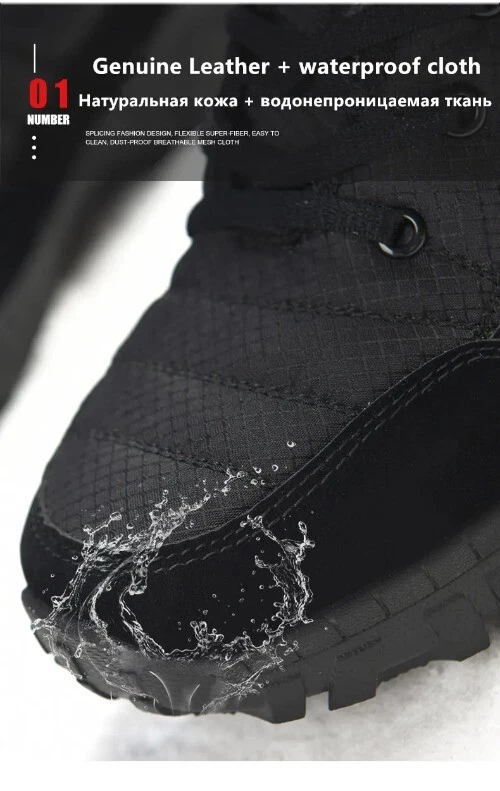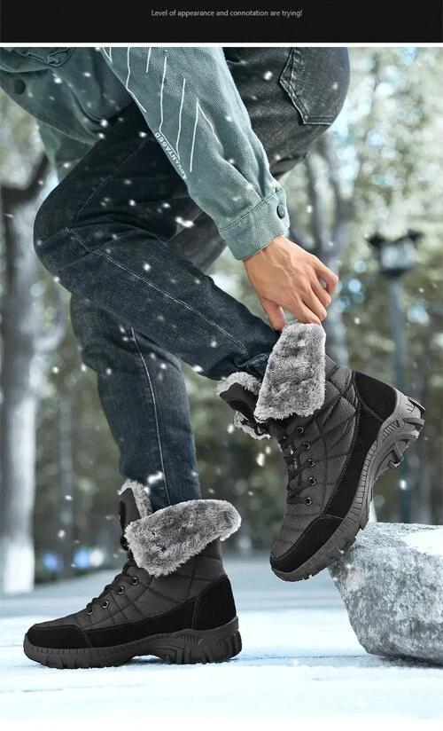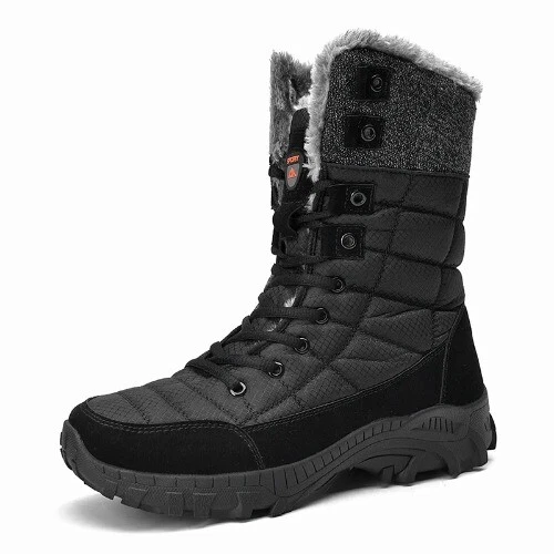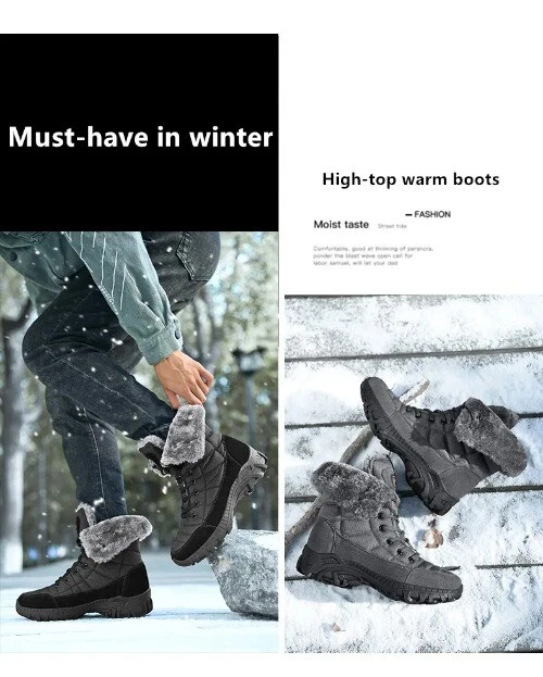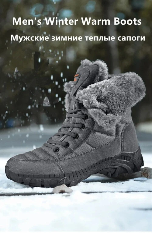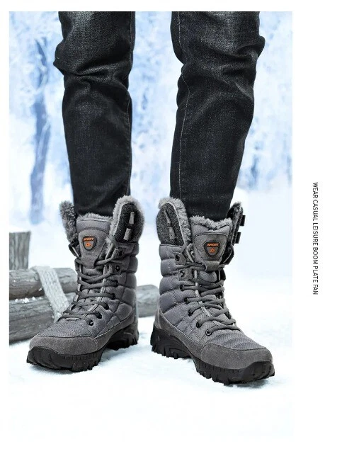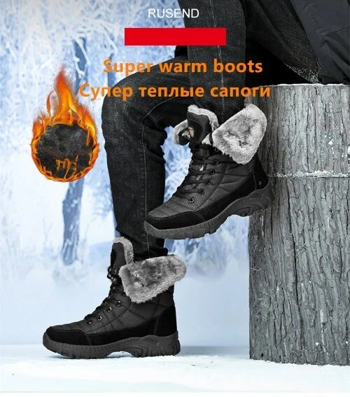 Super Warm Waterproof Leather Men’s Snow Hiking Boots in Big Sizes