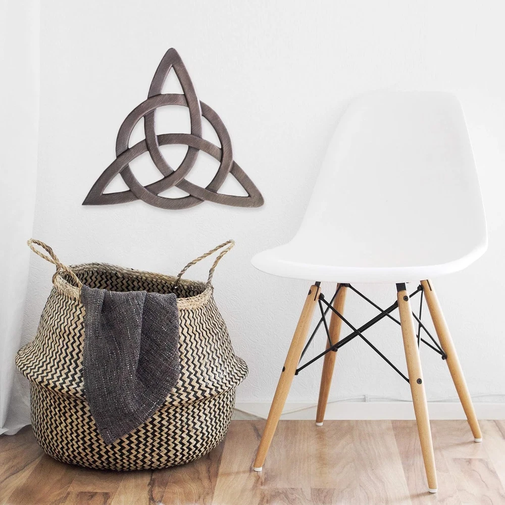 Super Z Outlet Resin Celtic Trinity Knot Wall Art for Home Decoration, Religious Communion Baptism Gifts, Churches Product Details Product Dimensions: 12.8 x 11.9 x 1.8 inches Item Weight: 1.5 pounds Manufacturer: Super Z Outlet Item model number: SZ059 Is Discontinued By Manufacturer: No Volume: 1 Cubic Centimeters Finish types: Textured Number of pieces: 1 Batteries required: No If you are looking for an eye catching wall sculpture that can be used as rustic wall art, then you have found it with this beautifully designed Celtic trinity knot! Makes the perfect house warming gift. Can be used as an abstract wall art and vintage wall art with ease do to its clean and intricate design features. Welcome guests to your home with a three-cornered wall art metal door decor that effortlessly blends in well with wood, metal and glass fixtures and surfaces to create a wonderful aesthetic. The circled triquetra known as the Trinity Knot has ancient Celtic and Pagan origins. Crafted out of resin with the look and feel of wood grain with it's lightly textured surface finished with a mahogany color. Adds a chic, high-end look that accents any interior design color scheme from neutral to vibrant paints and stains. Historically based on the unity of power of three; such as love, honor, protect or unity of family or friendship. The circled trinity, the Triquetra, traditionally is also a christian symbol, representing the father, son and holy ghost. The decorative wall art measures 11.5" inches wide and 10 1/4" inches tall. Made from solid cast polystone material with attached metal hook on the back side for easy hanging. Super Z Outlet is here to make all of life's fun moments a memorable time! With our party supply selection to help make remarkable themes come to life - From baby showers, birthday parties, bridal showers, weddings, graduation parties and more! Our items are suited for event planners, decorators, caterers, as our party favor products fit a variety of themes. With a vast selection of other house hold items as well. We make party planning an exceptionally great time while also having fun. With Super Z Outlet's wide selection, you are sure to find something for that special celebration!