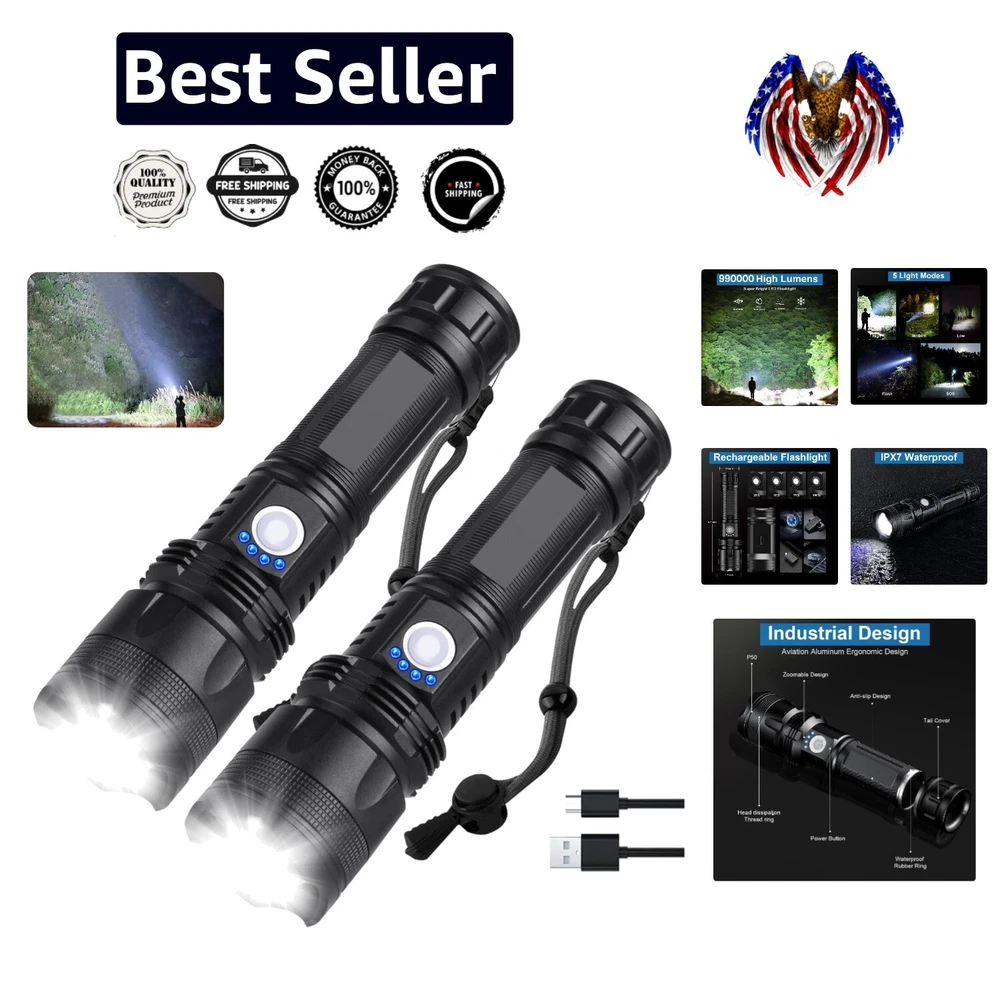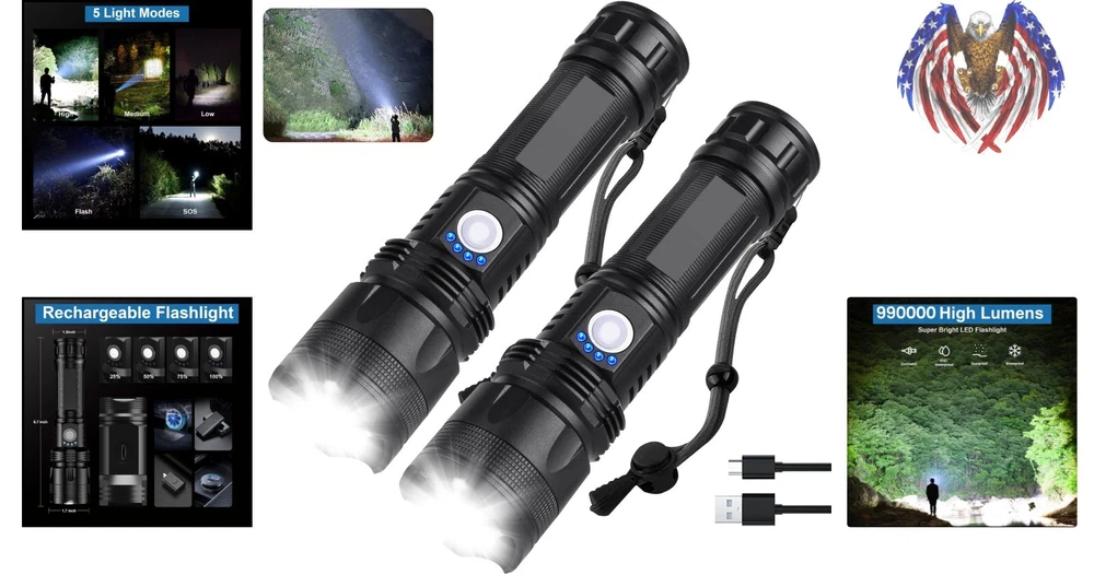 Superior 990,000 Lumens Rechargeable Flashlight Duo - Ultra Bright, Weatherproof
