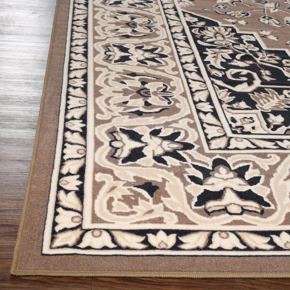 Add a sophisticated touch to your living space with the Superior Glendale Indoor Area Rug. Made from durable materials, this rug is incredibly sturdy while remaining soft and comfortable underfoot. This elegant area rug showcases a detailed floral medallion pattern to bring visual intrigue to your tile or hardwood floors. Its regal feel adorns your floors and instantly coordinates with any traditional or formal home styles. The cozy pile height is plush and easy to maintain, making this rug a long-lasting option for homes with children and pets. DURABLE AND COMFORTABLE: Crafted from 100% Polypropylene; Jute backing; Select sizes (2' 7" x 6', 10' x 14', 12' x 15' and 12' x 18') are made with 100% Nylon, foldable, non-slip foam backing; ideal for high-traffic areas or homes with children and pets MATCH YOUR DECOR: Makes a wonderful accent to blend with any home decor style; Coordinates seamlessly with Traditional, Formal, or Classic decor styles; Color options include: Green, Deep Royal, Grey, Rivulet, Brown, Gold, Red VERSATILE USE: Available in a variety of popular sizes; For a quick and easy refresh, our rugs work well in the foyer, hallway, entryway, master or guest bedroom, in the living room or family room, under your coffee table, in the kitchen, or in an office EASY CARE: For long-lasting results, we recommend to vacuum regularly; Turn to equalize wear; Spot clean spills; Select sizes (2' 7" x 6', 10' x 14', 12' x 15' and 12' x 18') are machine washable; Please follow care label for best results PERFECT GIFT: Our rugs match a variety of styles and make great gifts; Perfect for bridal, house-warming, or holiday; Update any room in your home, office, dorm, or apartment in an instant; This product is OEKO-TEX certified for safety and sustainability
