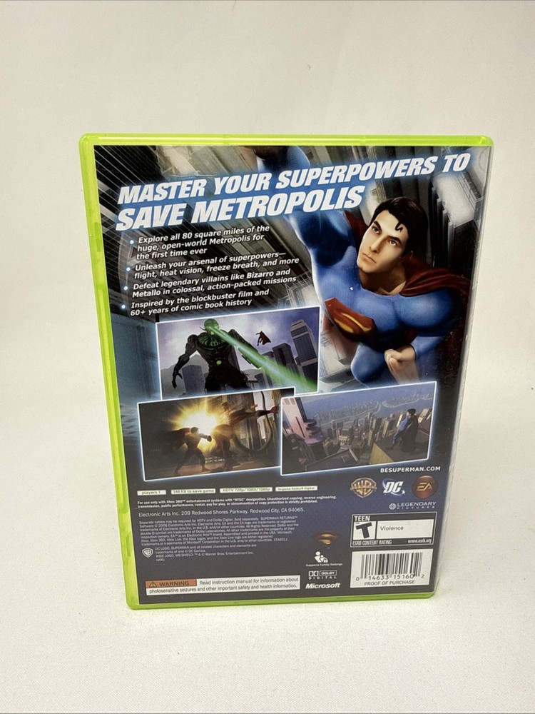 "Superman Returns" for the Microsoft Xbox 360, released in 2006, is an action-adventure game published by Electronic Arts. As part of the Superman video game series, players take on the role of the iconic superhero and navigate through various levels filled with challenges and enemies. With a T-Teen rating, the game offers exciting gameplay and unique abilities for Superman, allowing fans to experience the adventures of the famous DC Comics character in a virtual world.