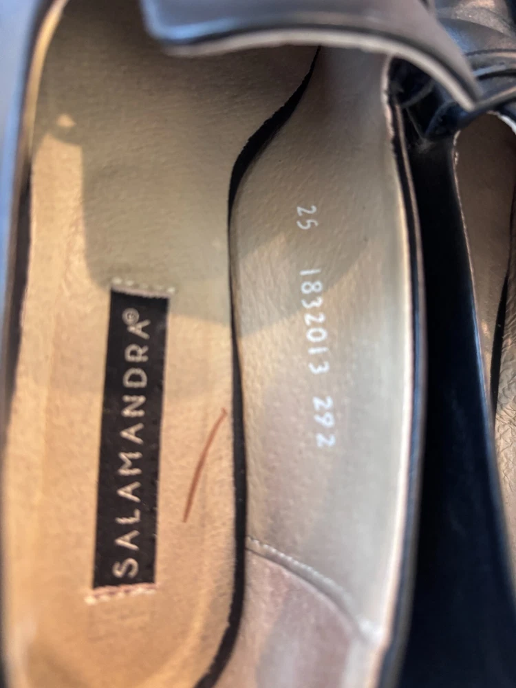 ๐Ÿ‡บ๐Ÿ‡ธ๐Ÿ‡บ๐Ÿ‡ธ Sold by a Proud Military Family ๐Ÿ‡บ๐Ÿ‡ธ๐Ÿ‡บ๐Ÿ‡ธ ~10% of every item I sell is donated to our charity - Veterans Community Project. Please visit my eBay store for all the items I have listed to help this great cause. Elevate your style with the sleek Salamander dress loafers, an essential addition to any fashion-conscious wardrobe. These shoes boast a versatile black hue, combining sophistication with comfort. The supple leather upper and lining ensure a luxurious feel, while the durable leather outsole promises lasting wear. Designed with practicality in mind, the slip-on closure makes them effortlessly chic and convenient. Crafted for the discerning woman, these loafers feature a classic round toe and a low wedge heel for a subtle lift. The solid pattern and non-customized design offer a timeless appeal, making them a perfect match for both casual and formal attire. With a size 8US fit and a medium width, these loafers are a testament to Salamander's commitment to quality and elegance.