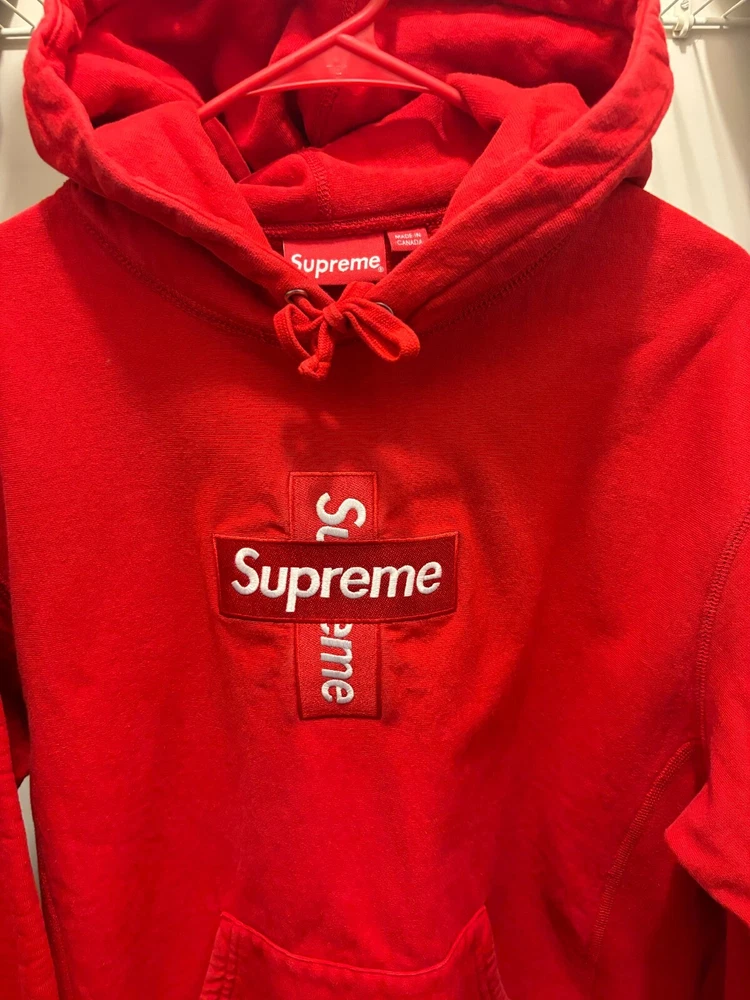 Supreme Cross Box Logo Hoodie Sweatshirt in Red, available in size Medium. Made of high-quality cotton fabric, this hoodie is comfortable and durable. The Hoodie is in very good condition and was only worn 3 to 4 times. 100% Authentic Supreme. If you have any questions feel free to ask.