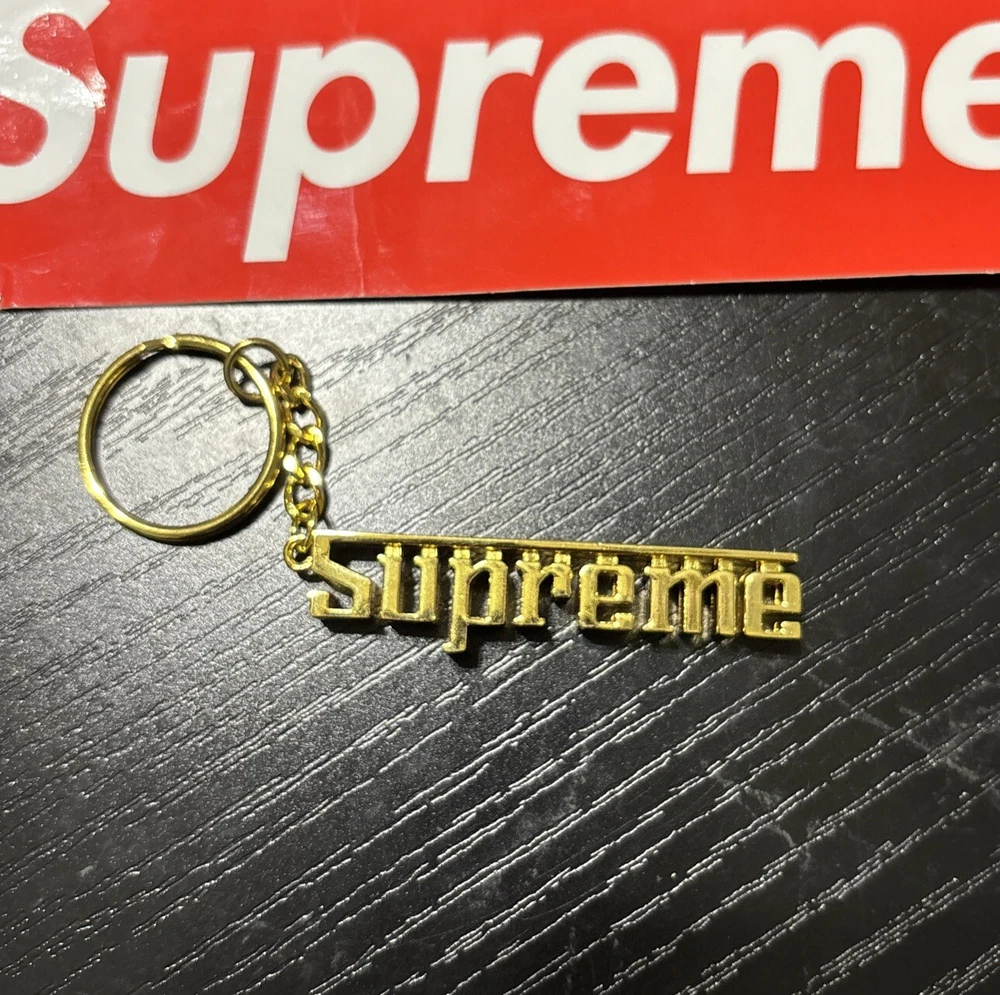 Personalize: No Vintage: No Department: Men Character: Silver Material: Metal Color: Gold Type: Key Chain Brand: Supreme Handmade: No