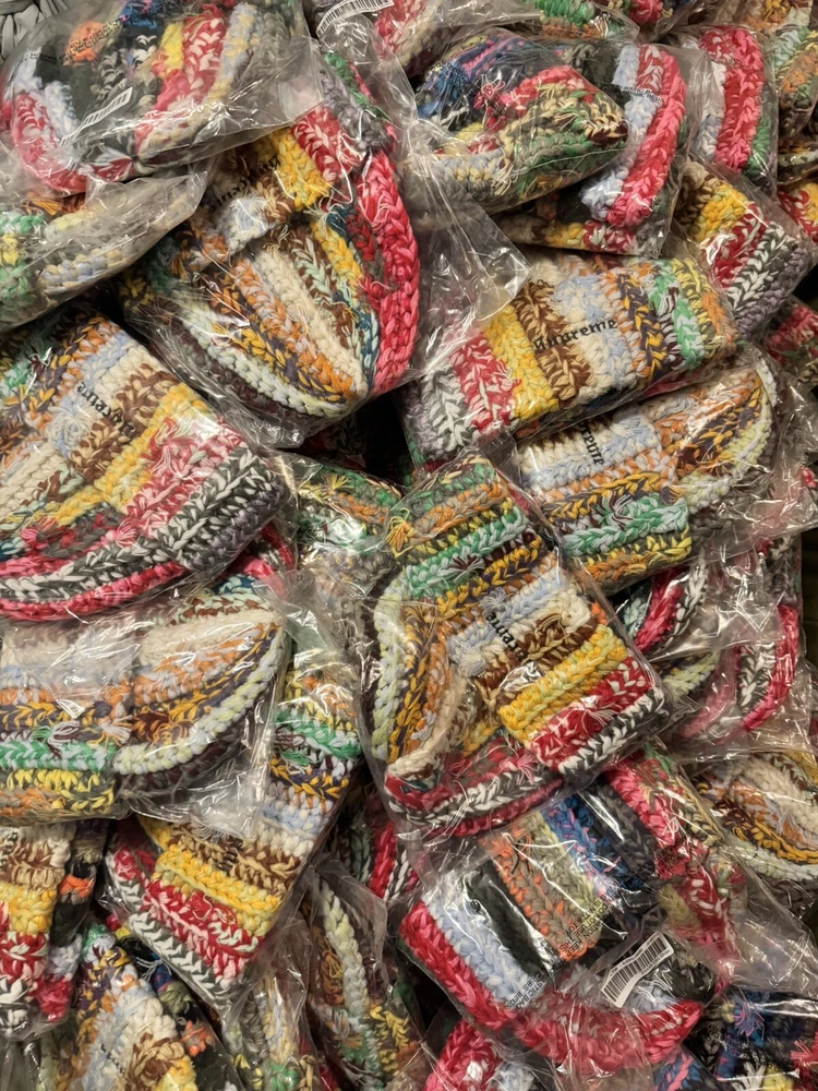 Elevate your winter wardrobe with this Supreme Hand Tied Beanie. The multicolor design adds a pop of color to any outfit and is perfect for the colder months. Made of high-quality cotton material, this beanie is both comfortable and stylish. It features the Supreme brand name on the front, adding an extra touch of style to your accessory collection. This beanie is one size fits all and is suitable for men of all ages. Get your hands on this authentic and brand new Supreme beanie today!