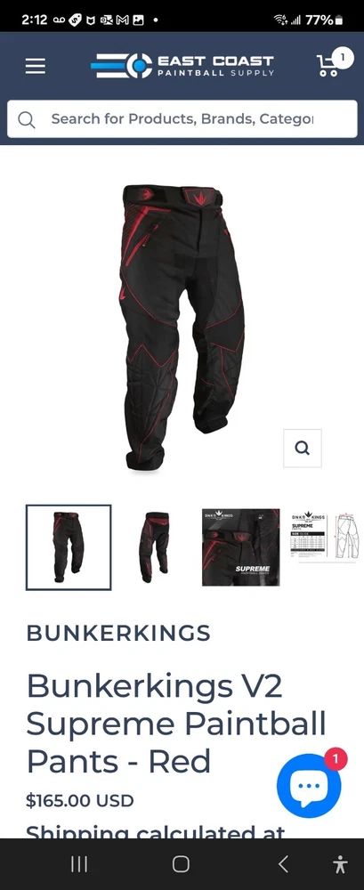 BNKR KINGS Supreme Paintballer Pants Blk/Red XXL $165 Amazon